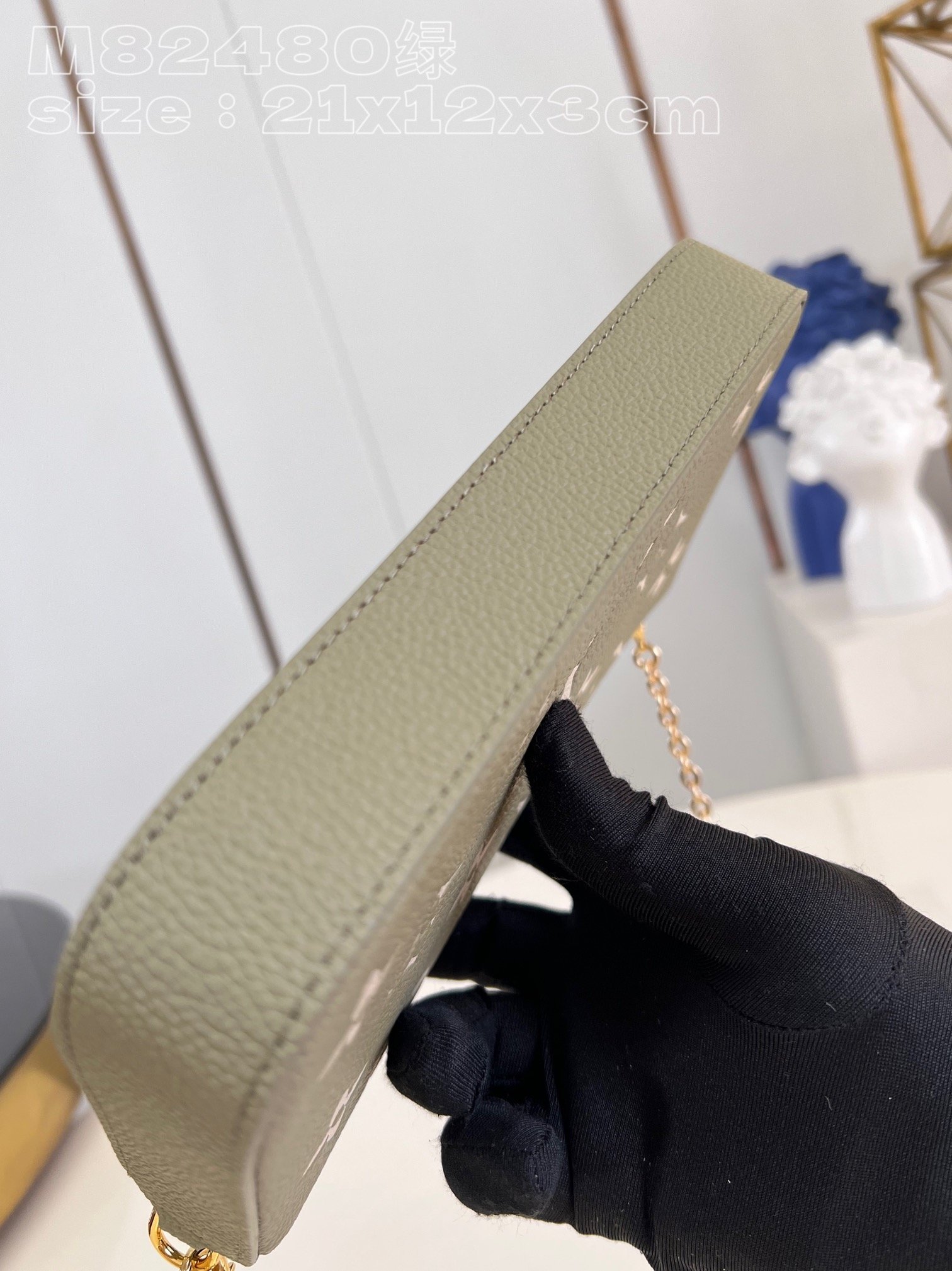 [Exclusive real shot M82480 green] This Pochette Félicie chain bag is made of Monogram Empreinte leather and depicts the Monogram pattern in light colors. The envelope-style design includes a detachable interior pocket that can be transformed into an elegant clutch by removing the chain. size:21x12x3cm