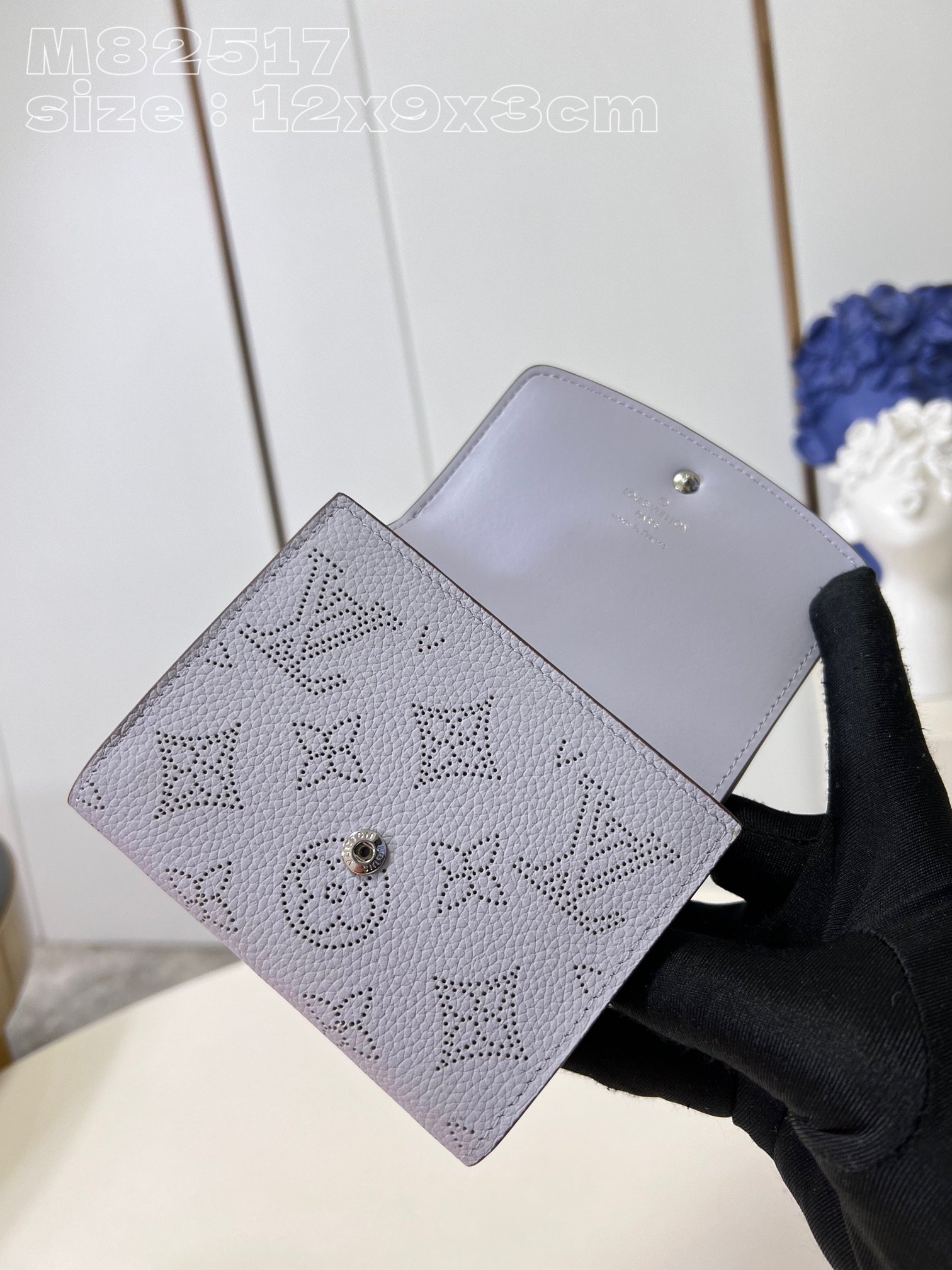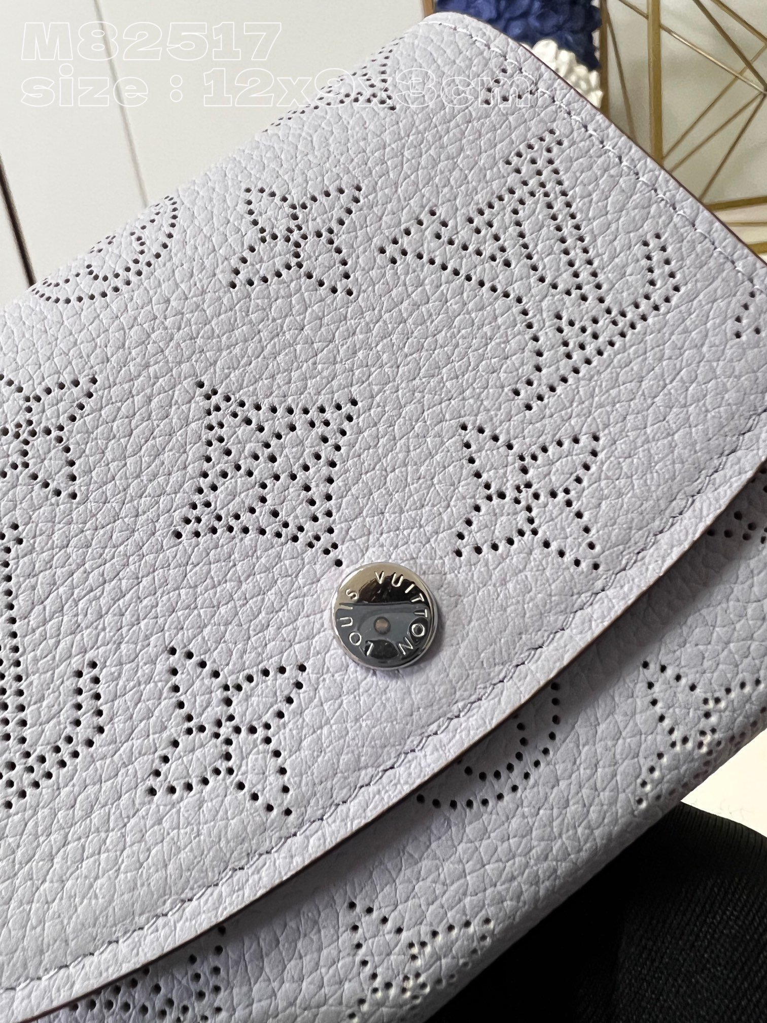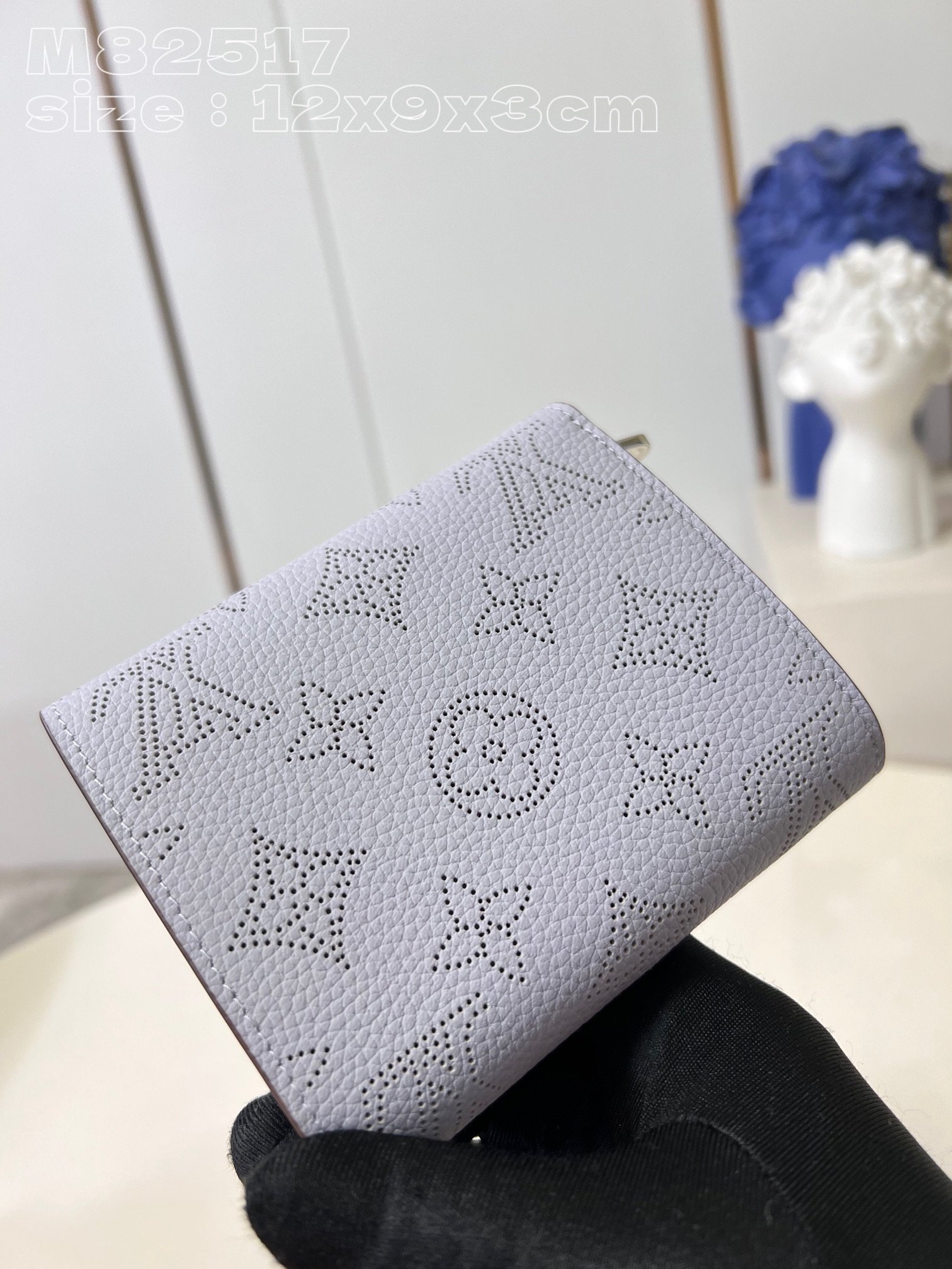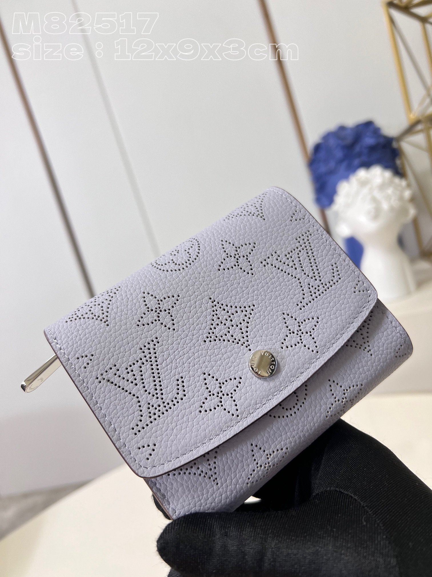 [Exclusive real shot M82517] Made of soft perforated leather with Louis Vuitton’s unique Monogram perforation, this small Iris compact wallet can be easily stored in any handbag. Opening the curved flap reveals a functional interior compartment, including a credit card slot and a zippered coin compartment. 12 x 9.5 x 3 cm (length x height x width)