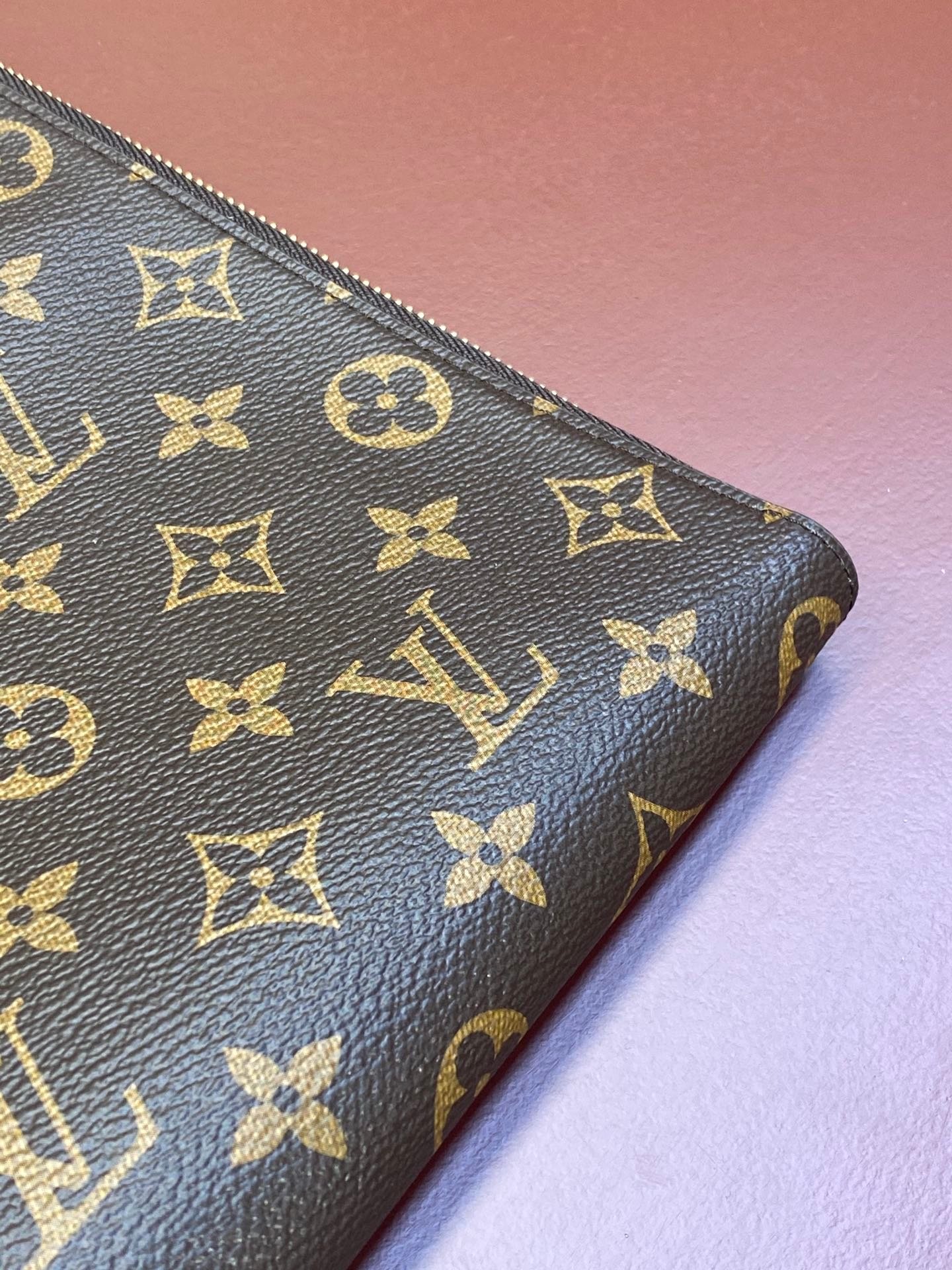 M82540 Presbyopia, a large-capacity « Pochette Jour » that can store a laptop. Monogram Eclipse canvas with black leather trim, finished with black metal hardware. The L-shaped zipper opening allows you to take out the contents immediately, which is also its charm. Can be used as a clutch or bag.