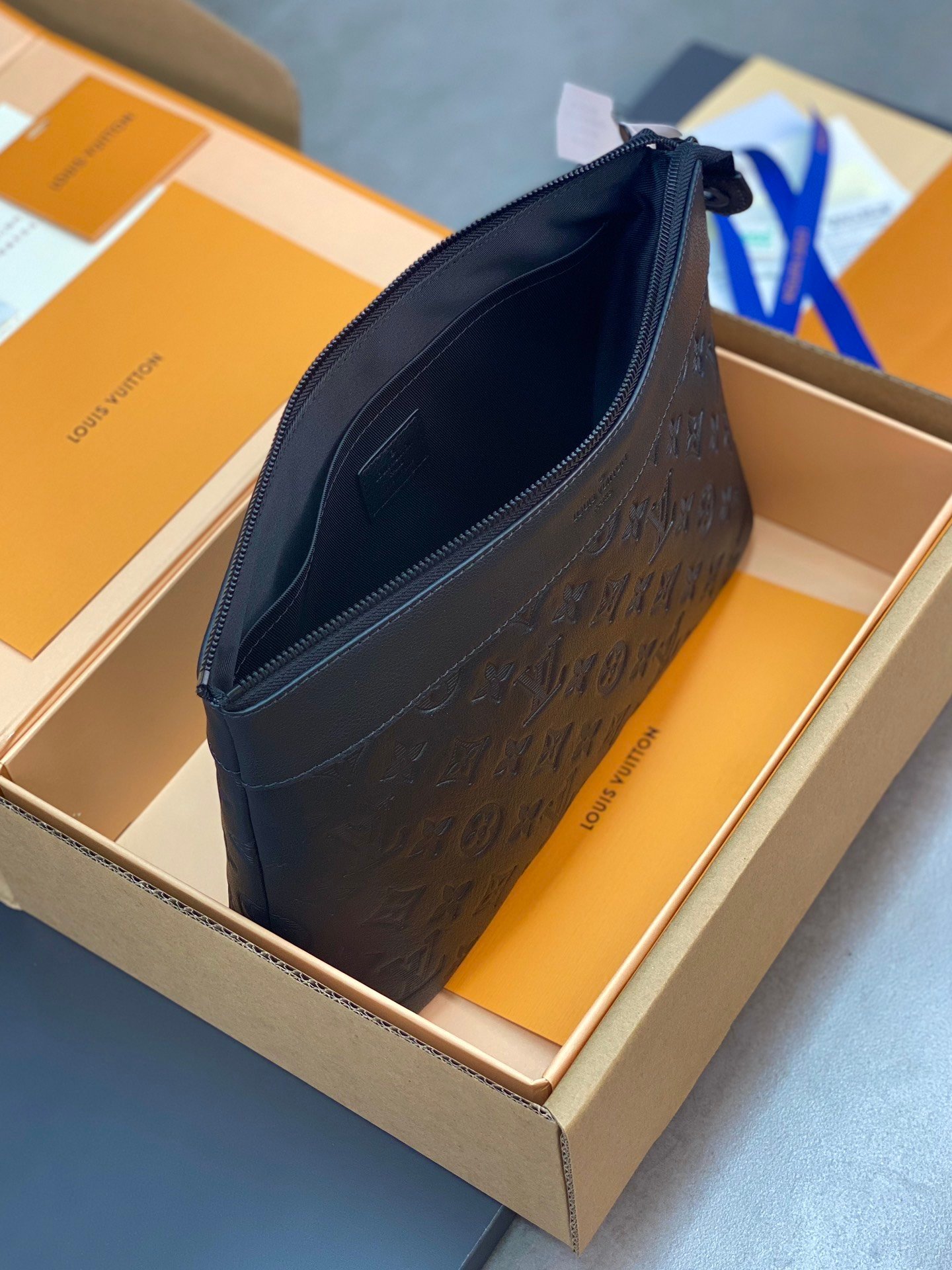 New handbag at the counter ????????M82545 full leather embossed! POCHETTE VOYAGE SOUPLE Clutch The Pochette Voyage Souple Clutch is made of soft Monogram Eclipse coated canvas, and uses rounded strokes to outline the classic Pochette Voyage Clutch lines, bringing a comfortable travel experience. The slim construction features a zip compartment and magnetic back pocket. 32 x 21 x 8 cm (length x height x width)