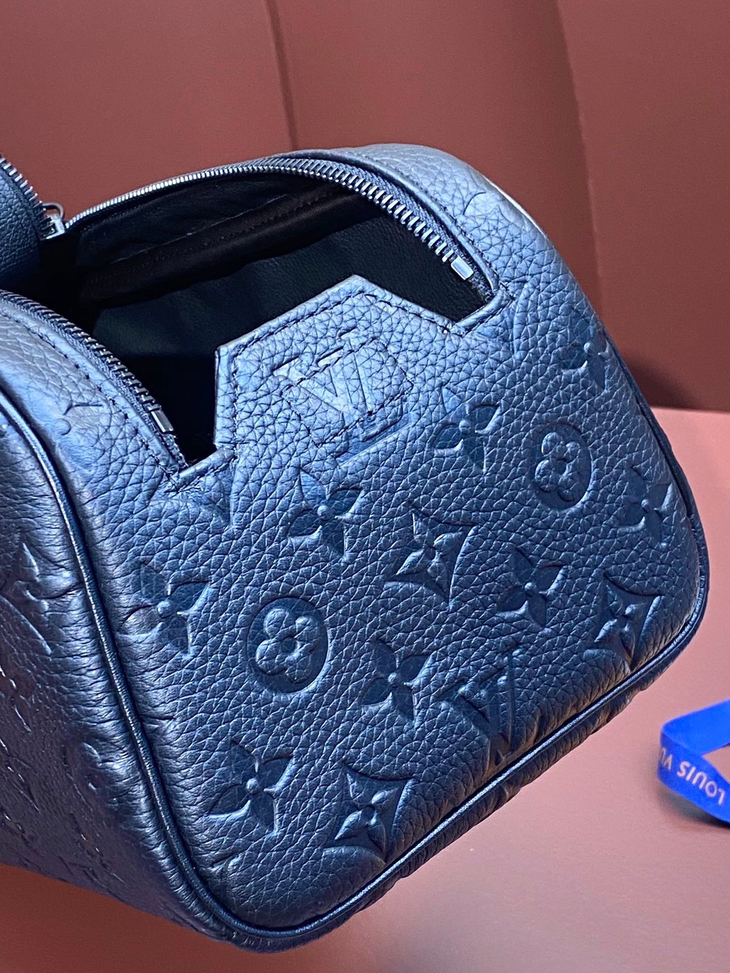 M82576 black! This colorful Dopp Kit toiletry bag is made of genuine first-grain cowhide and is made of grained Taurillon leather with an embossed Monogram pattern. It is combined with a double-zipper wide-mouth design and a washable lining to properly store and carry toiletries. Stable handle makes it easy to hang on bathroom hooks. Dimensions: 28 x 15 x 16.5 cm