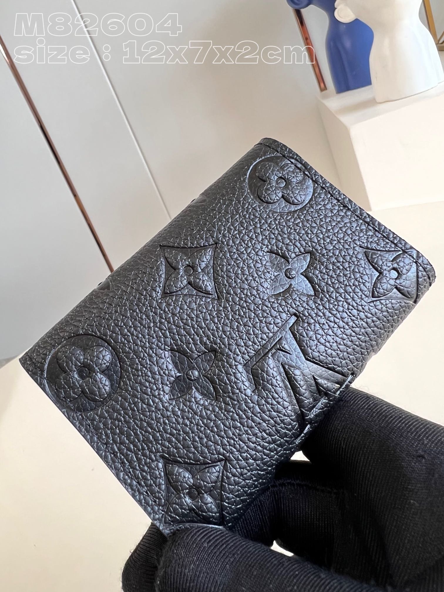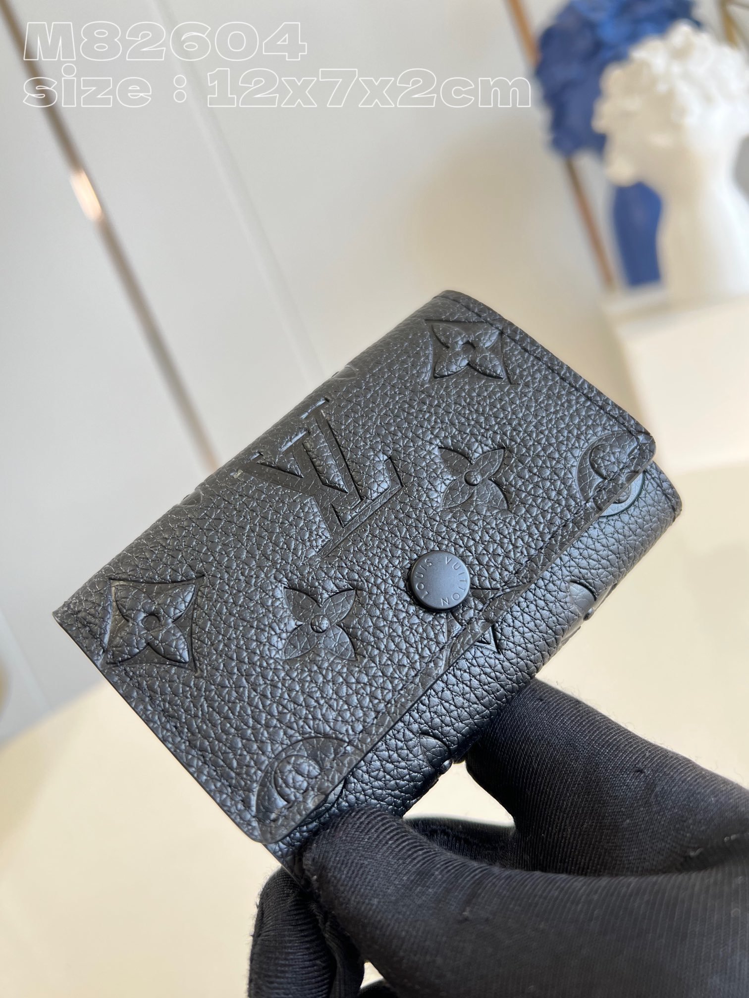 [Exclusive real shot M82604 black embossed] This key bag uses the LV letters and Monogram flower cluster patterns as delicate embossing of full-grain Taurillon leather, with snap button closure. 12 x 7 x 2 cm (length x height x width)