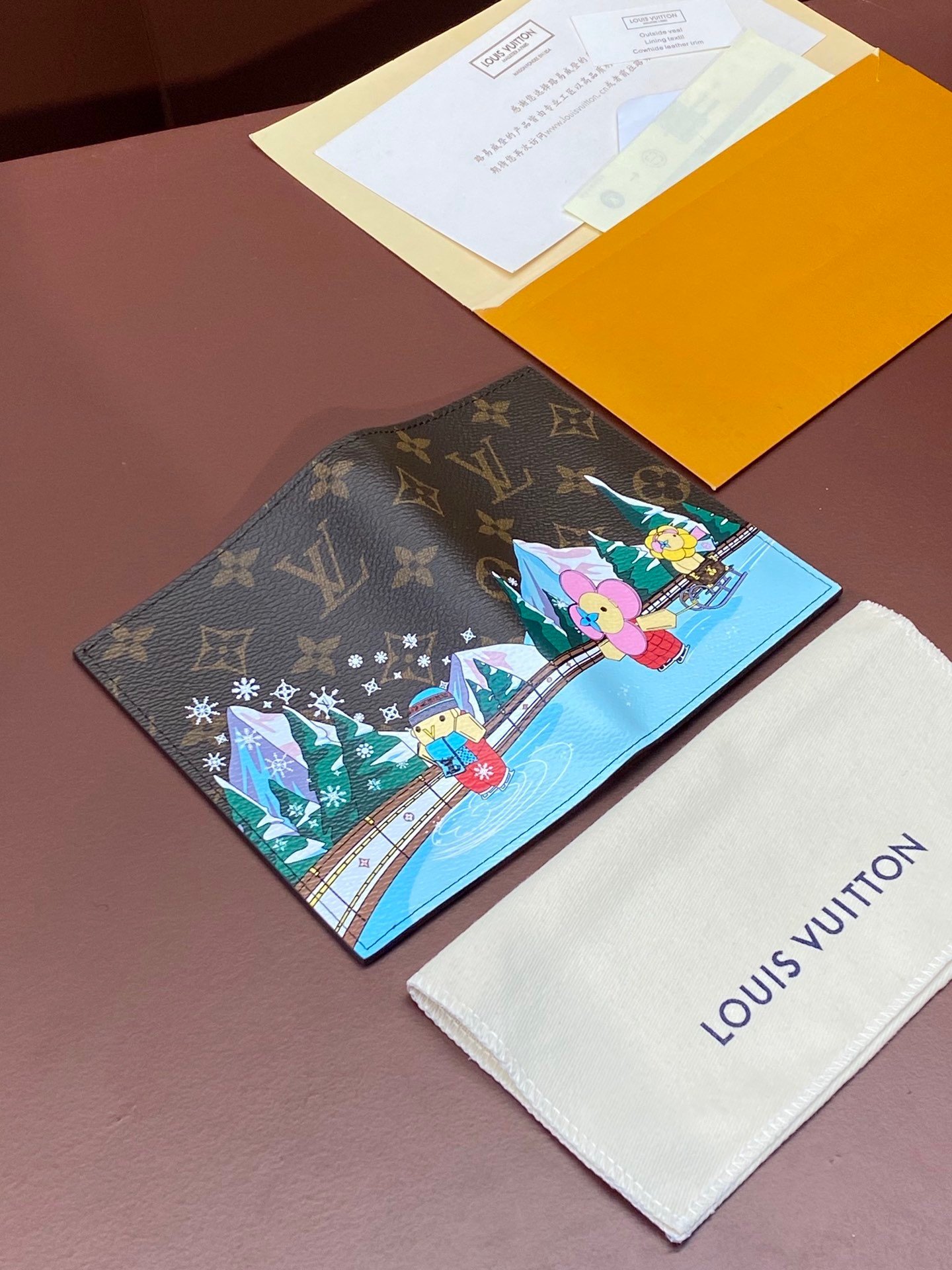 2023! Christmas style ❄️????M82621 passport holder, an excellent companion for fashionable travel. Lined with luxurious grained calfskin and featuring a multi-compartment interior, this is a classic travel accessory. The image of a long lion carrying a gorgeous Louis Vuitton handbag from a shopping spree transforms this elegant passport holder into the embodiment of cuteness. Dimensions 14 x 10.5cm.