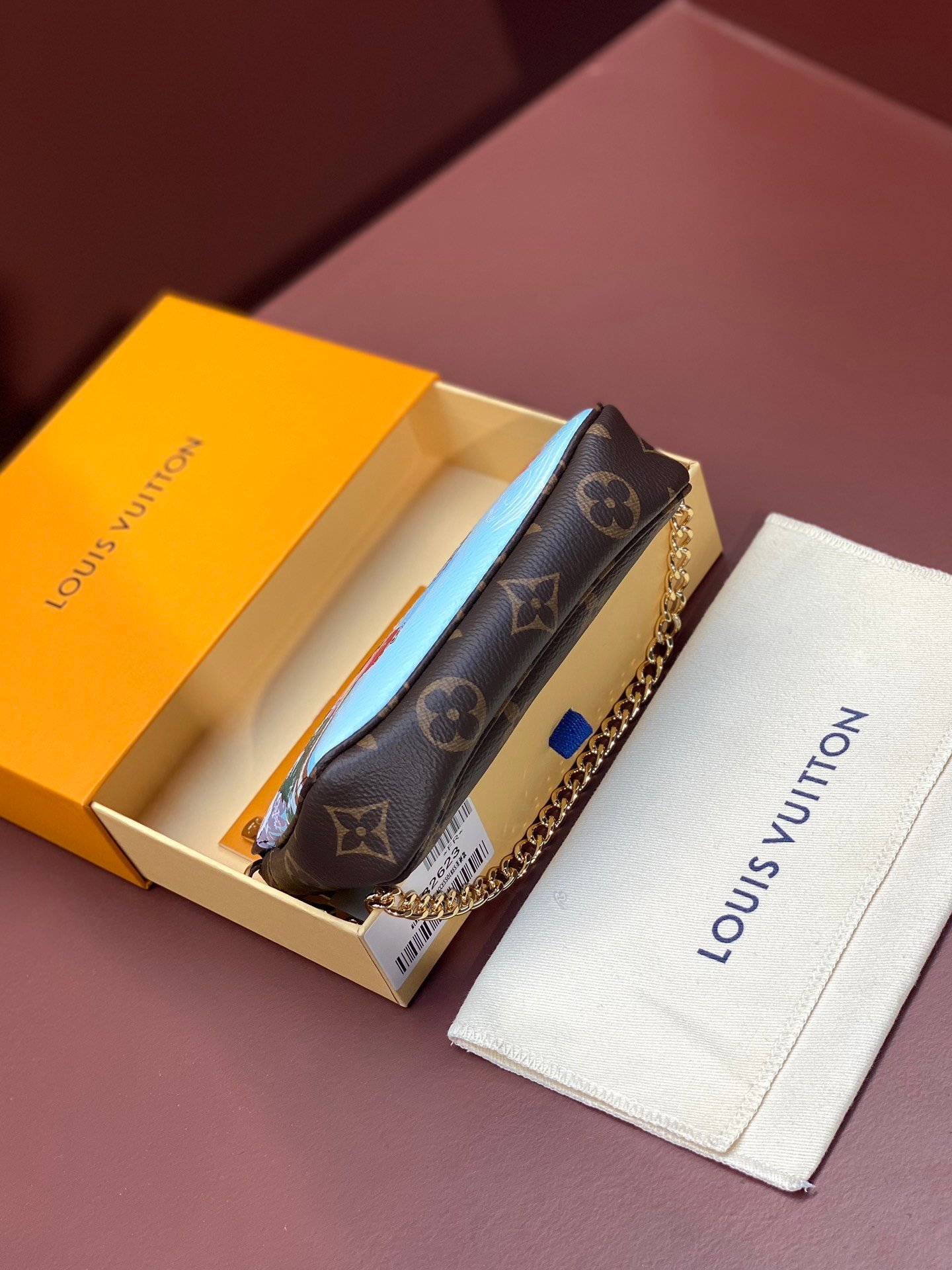 2023! Christmas style ❄️????M82623 snowflake! This accessory bag opens with a zipper and comes with a gold chain that can be fastened to the D-ring on most Louis Vuitton handbags. The unique silk screen design is lively and cute. It is a limited edition.