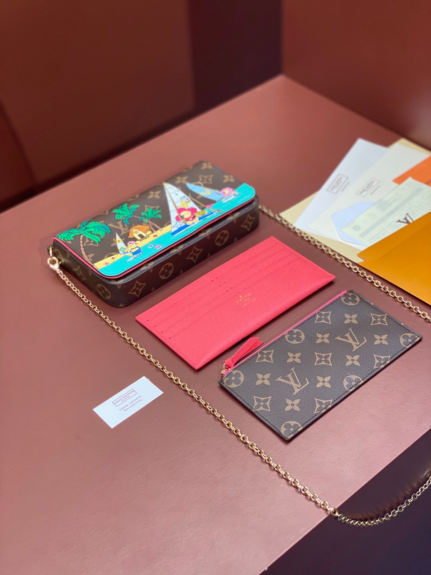 2023! Christmas style❄️????M82627 three-piece set Felicie handbag is elegant and luxurious. It contains two detachable pockets and is a fashionable choice for carrying and organizing your daily necessities. More than just a wallet, it can be used as a charming clutch or small handbag once the gold chain is removed. 21.0 x 11.0 x 2.0.