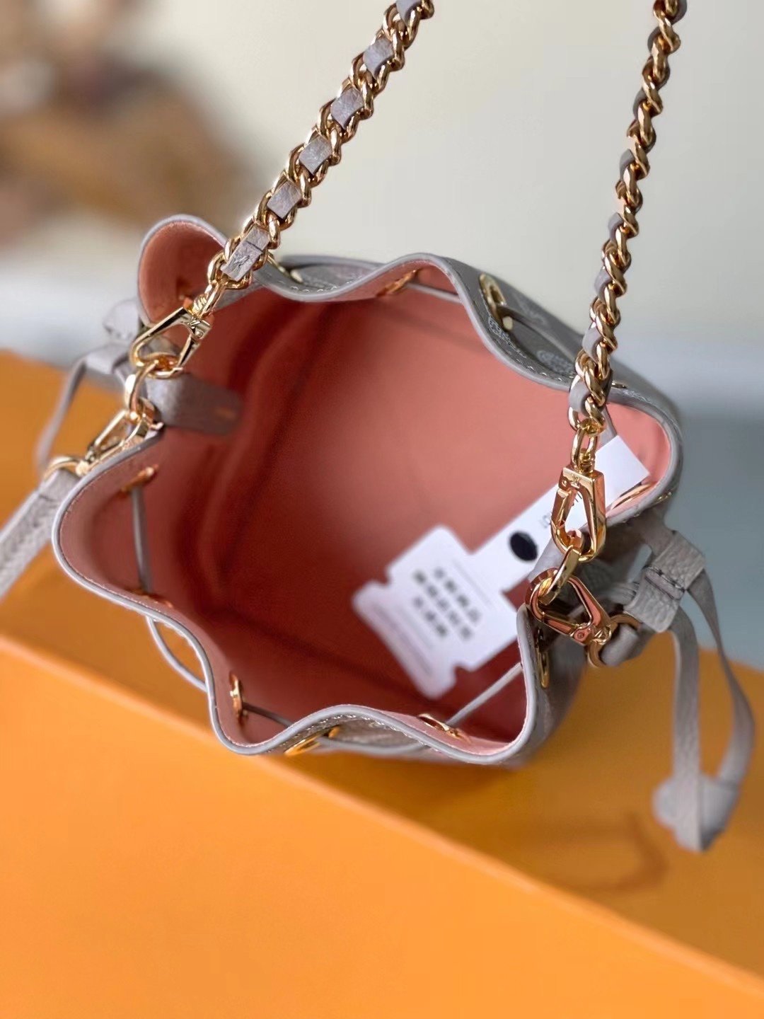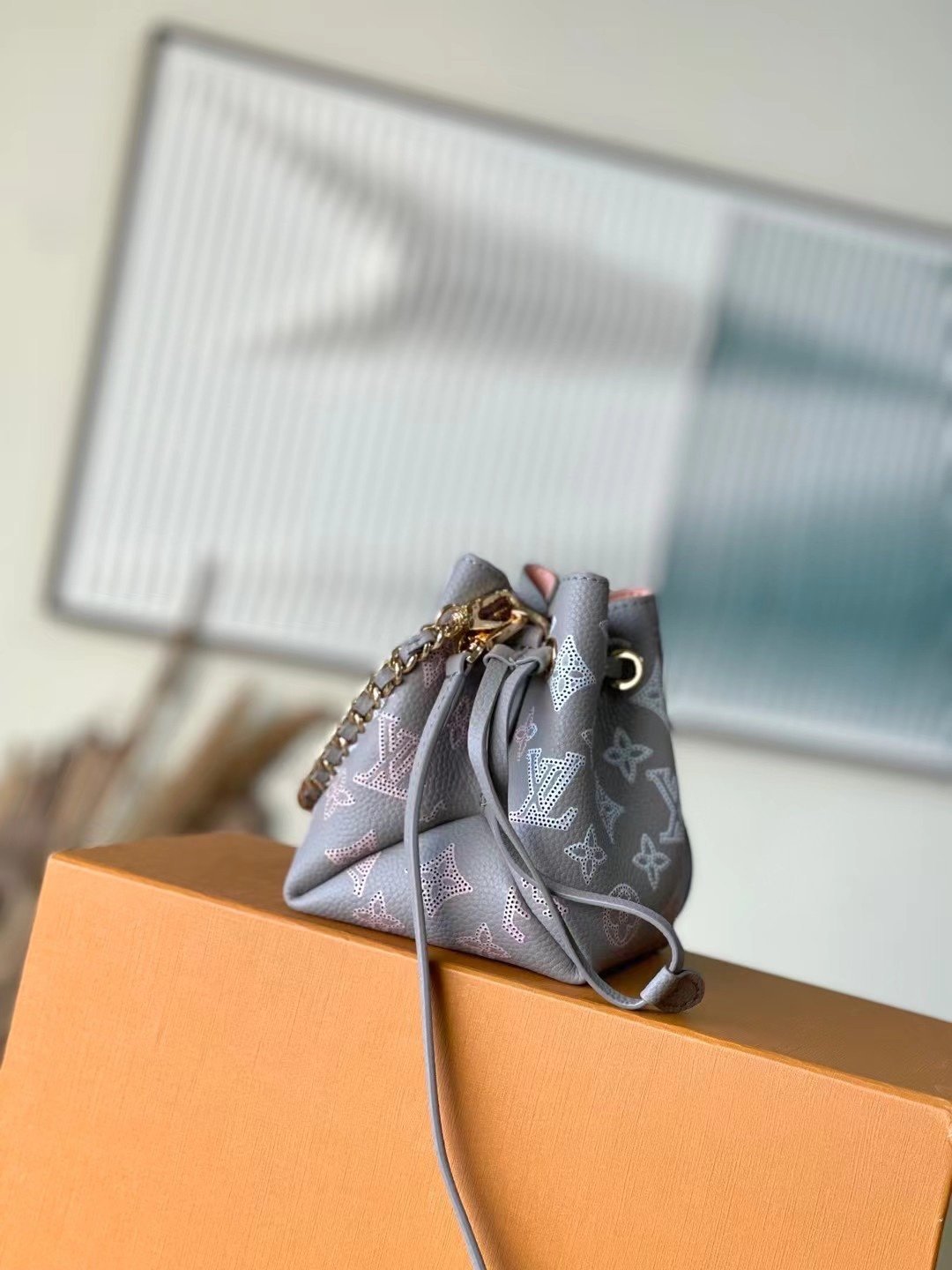 Overseas original order M82731 gray/gradient (hollow) is made of the brand’s iconic engraved cow leather, with exquisite perforations depicting Monogram flowers and LV letters. The restrained color palette and hardware lend a luxurious feel, while the leather drawstring keeps personal items safe and secure. Dimensions: 10.5 x 13.0 x 11.0 cm