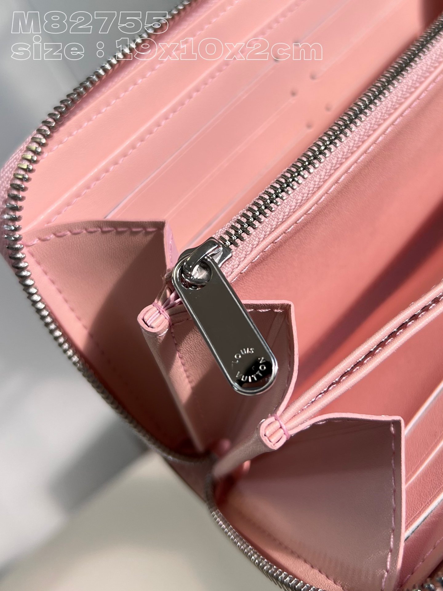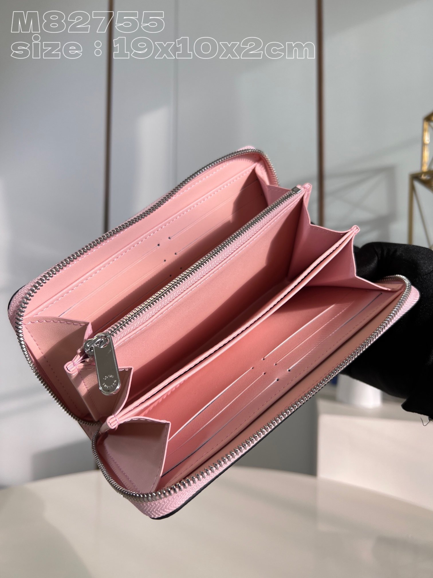 [Exclusive real shot M82755 pink] This zippy wallet is made of soft Mahina calfskin and embellished with a unique Monogram hollow carved pattern. The wallet has a secure full-zip design and an organized interior with multiple pockets, compartments and business card compartments. The wallet can also be carried as a clutch. 19.5 x 10.5 x 2.5 cm (length x height x width)