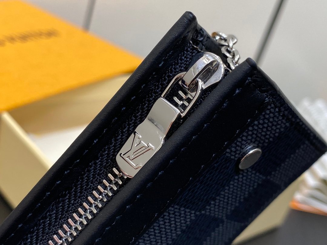 Top original order ✨ M82776 Black Check Key Bag Wallet Series Autumn and Winter New Zms VOYAGE Key Bag This Voyage key bag is made of Monogram Eclipse canvas with cow leather trim. It can be opened and closed with a zipper to securely store coins, folded banknotes, cards and keys. The hook fastener secures easily to the D-ring inside the Louis Vuitton bag. 12 x 7.5 x 3 cm.