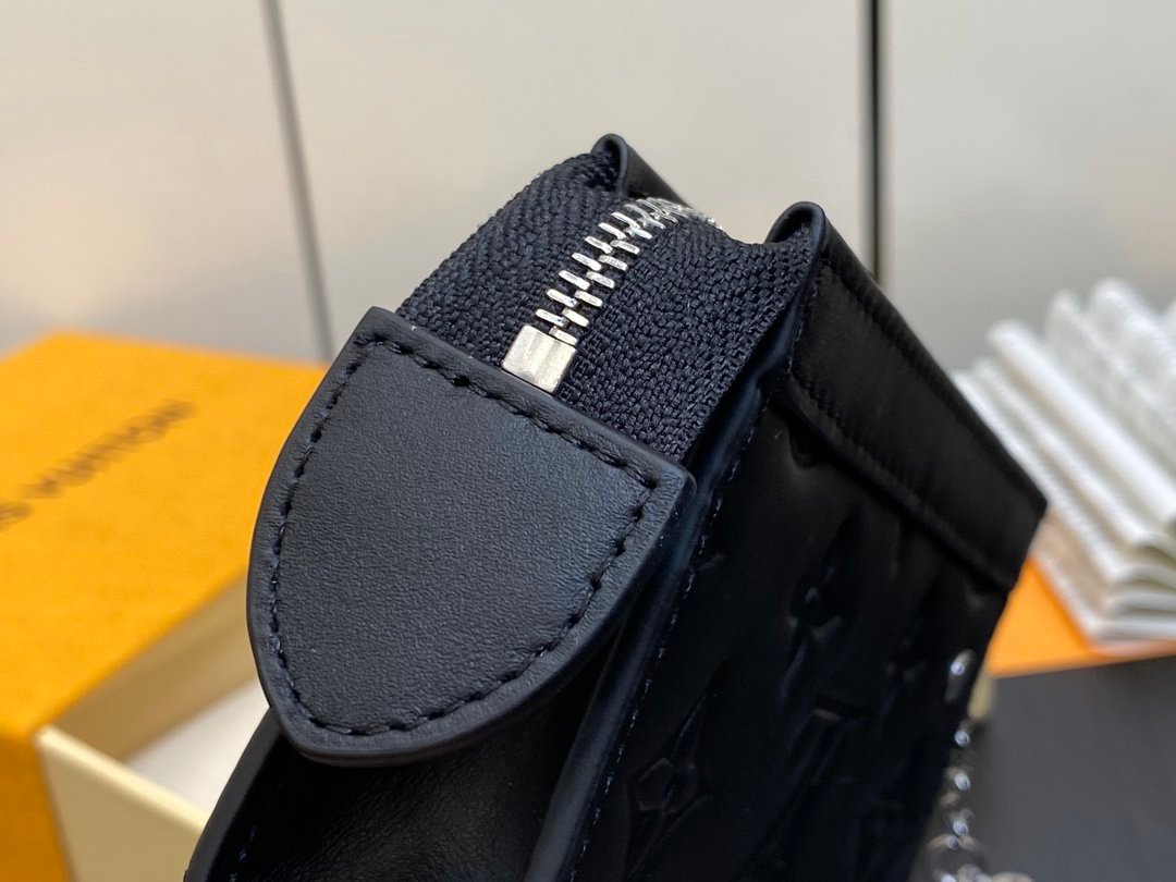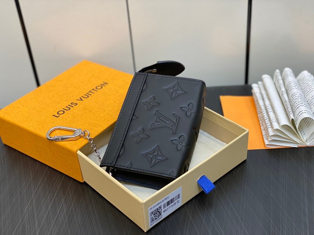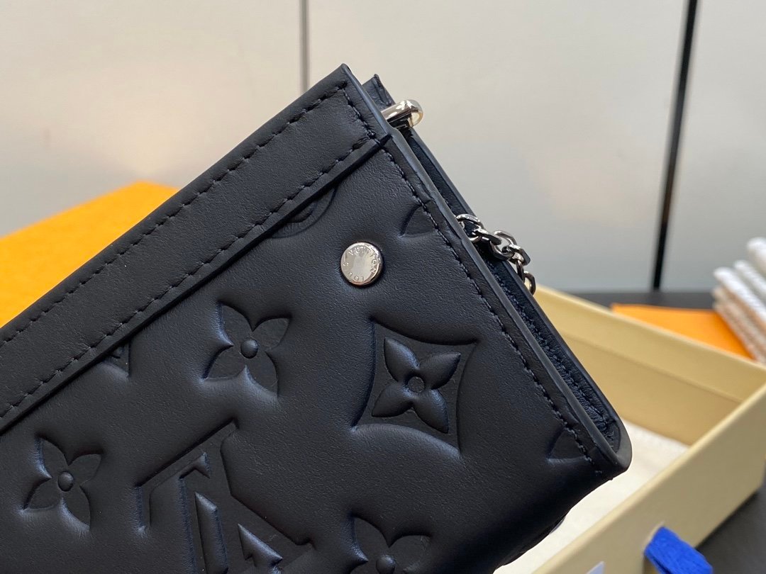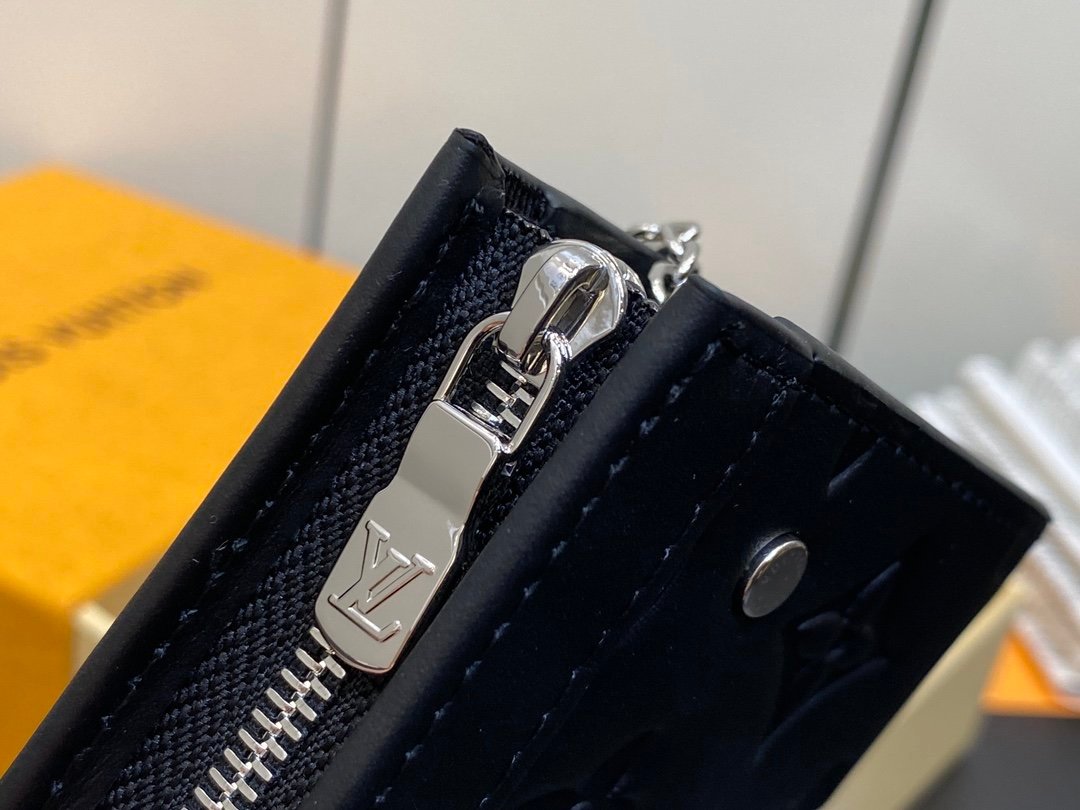 Top original order ✨ M82776 black full leather key bag wallet series Autumn and winter new Zms VOYAGE key bag This Voyage key bag is made of Monogram Eclipse canvas with cow leather trim. It can be opened and closed with a zipper to securely store coins, folded banknotes, cards and keys. The hook fastener secures easily to the D-ring inside the Louis Vuitton bag. 12 x 7.5 x 3 cm.