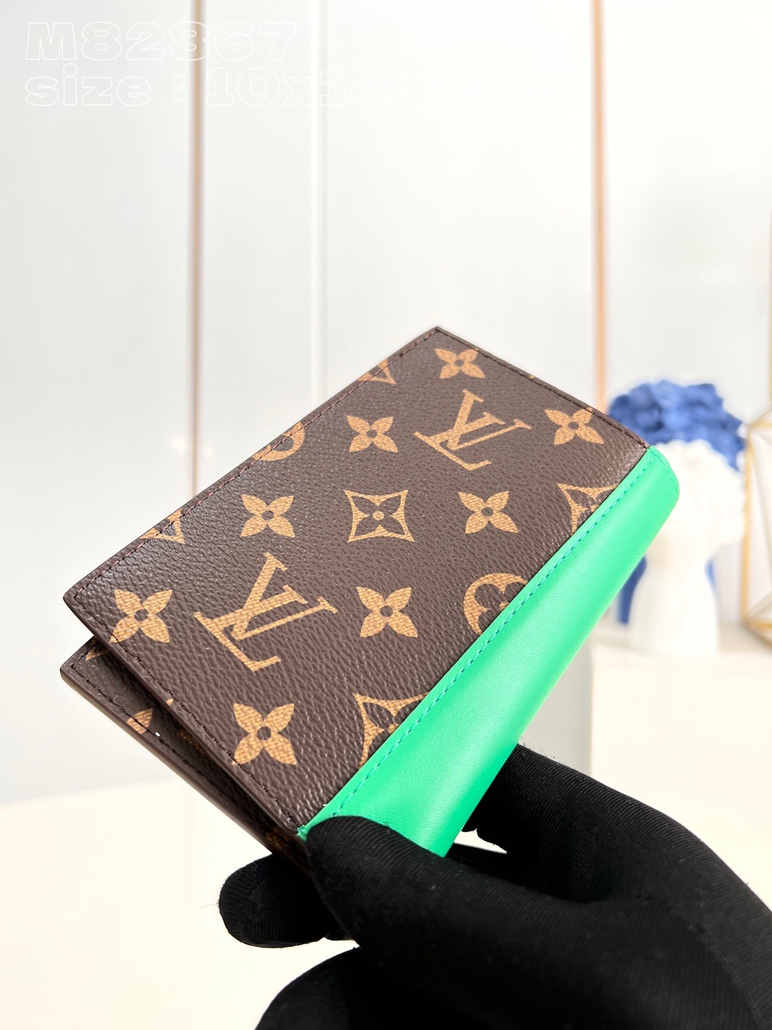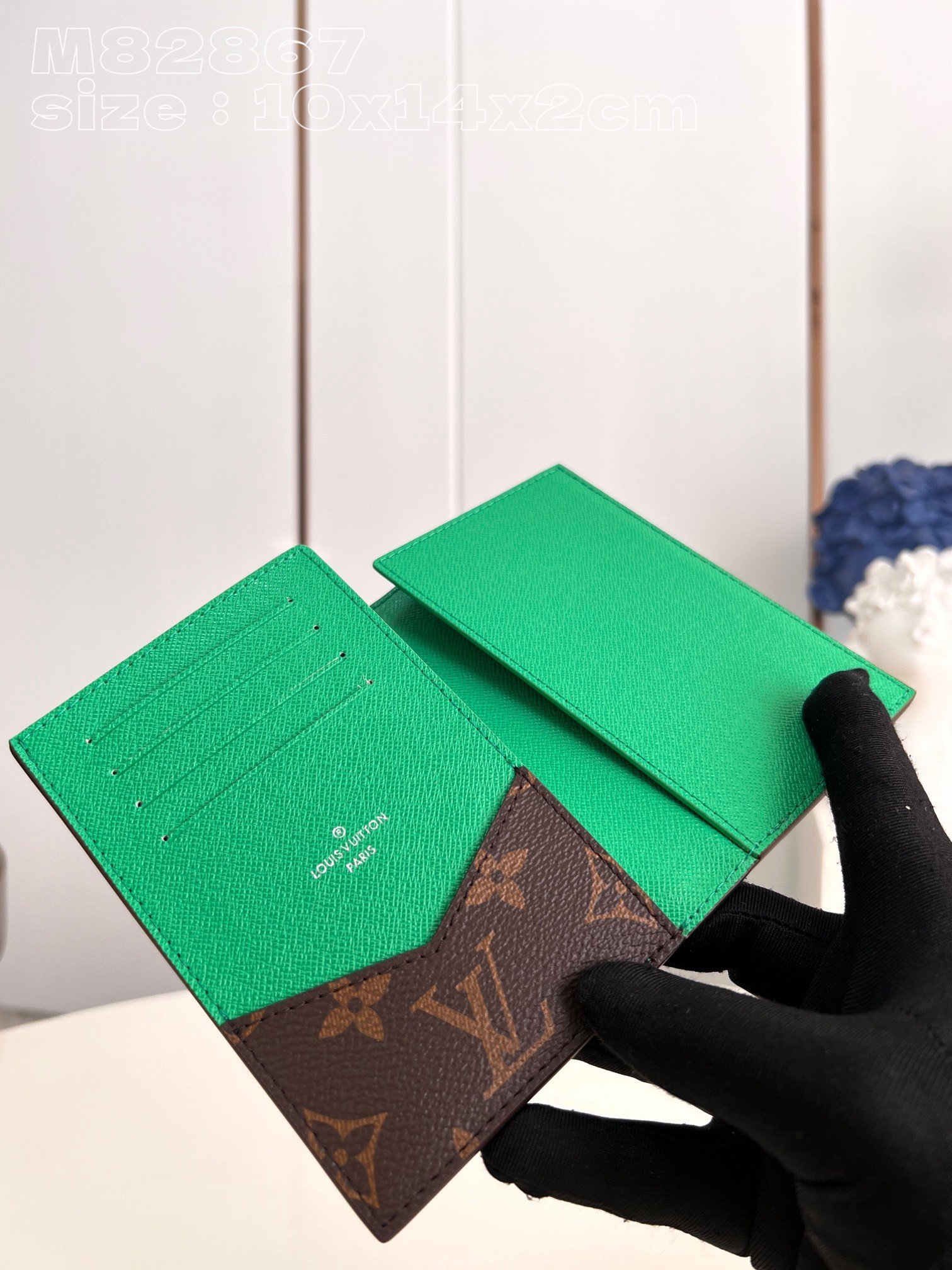 [Exclusive real shot M82867 green] This passport cover is made of Monogram Macassar canvas with bright leather trim, and the fabric lining continues the same tone. The practical design features slip pockets and multiple card slots to store your passport and other items. 10 x 14 x 2.5 cm (length x height x width)