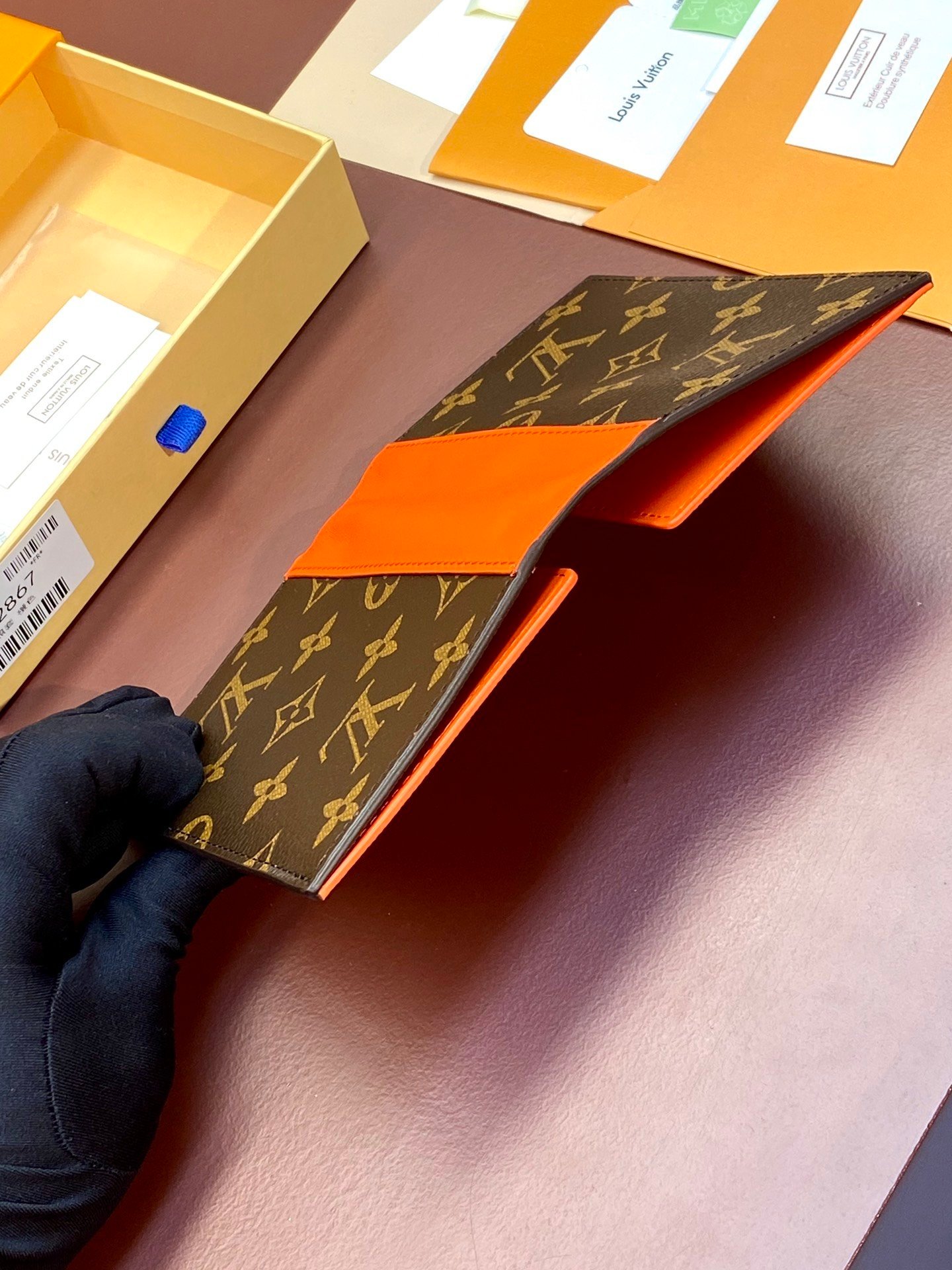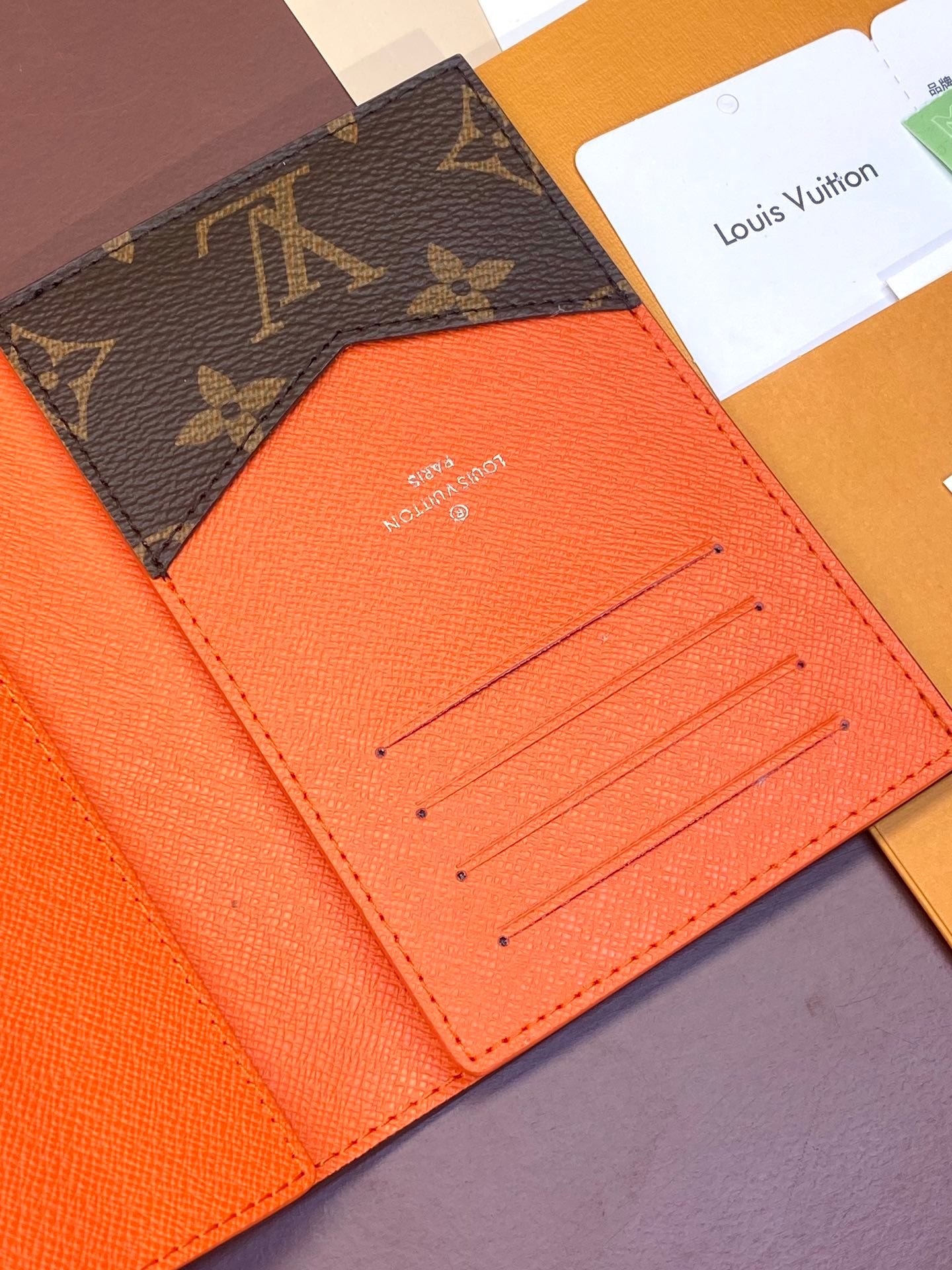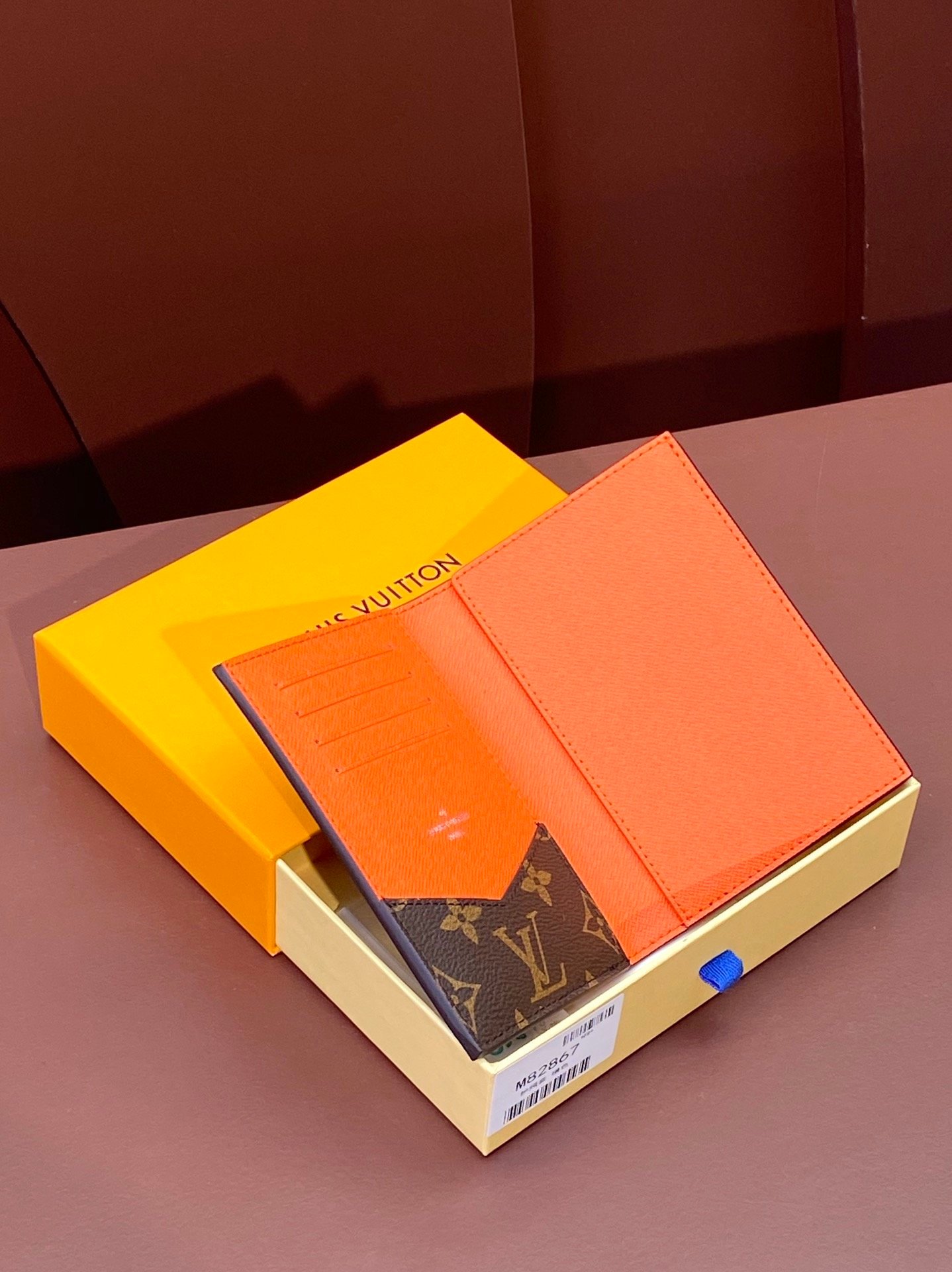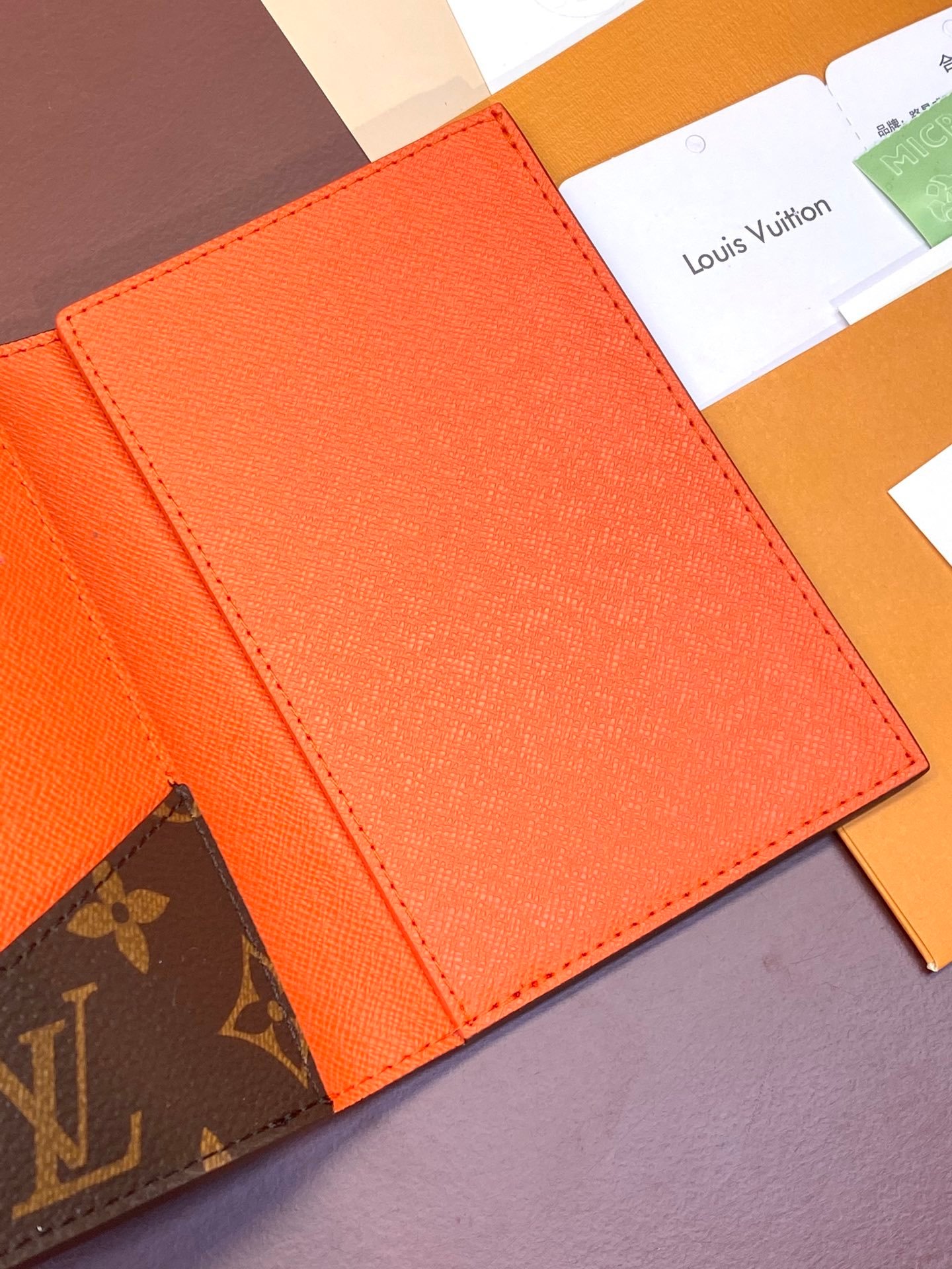 M82867 Orange! Passport case, this passport case is made of Monogram Macassar canvas with bright leather trim, and the fabric lining continues the same tone. The practical design features slip pockets and multiple card slots to store your passport and other items. 10 x 14 x 2.5 cm
