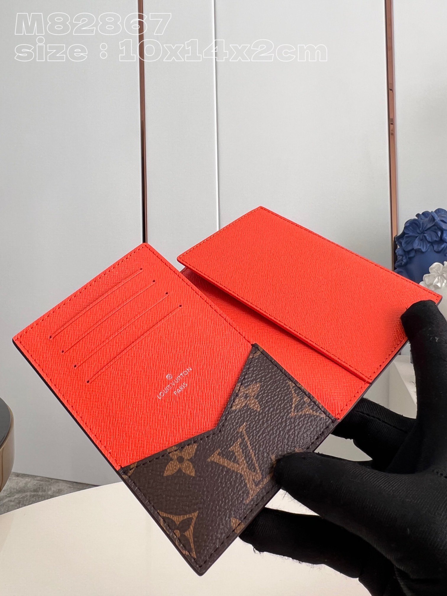[Exclusive real shot M82867 Orange] M82863 This passport cover is made of Monogram Macassar canvas with bright leather trim, and the fabric lining continues the same tone. The practical design features slip pockets and multiple card slots to store your passport and other items. 10 x 14 x 2.5 cm (length x height x width)