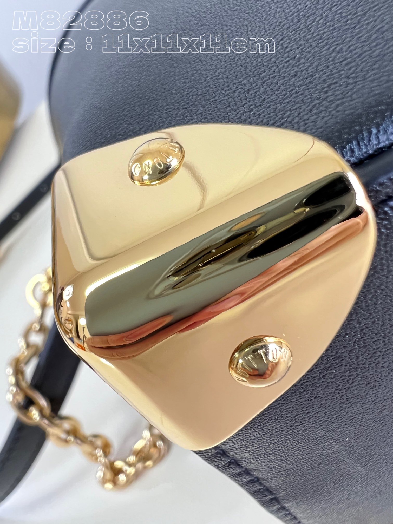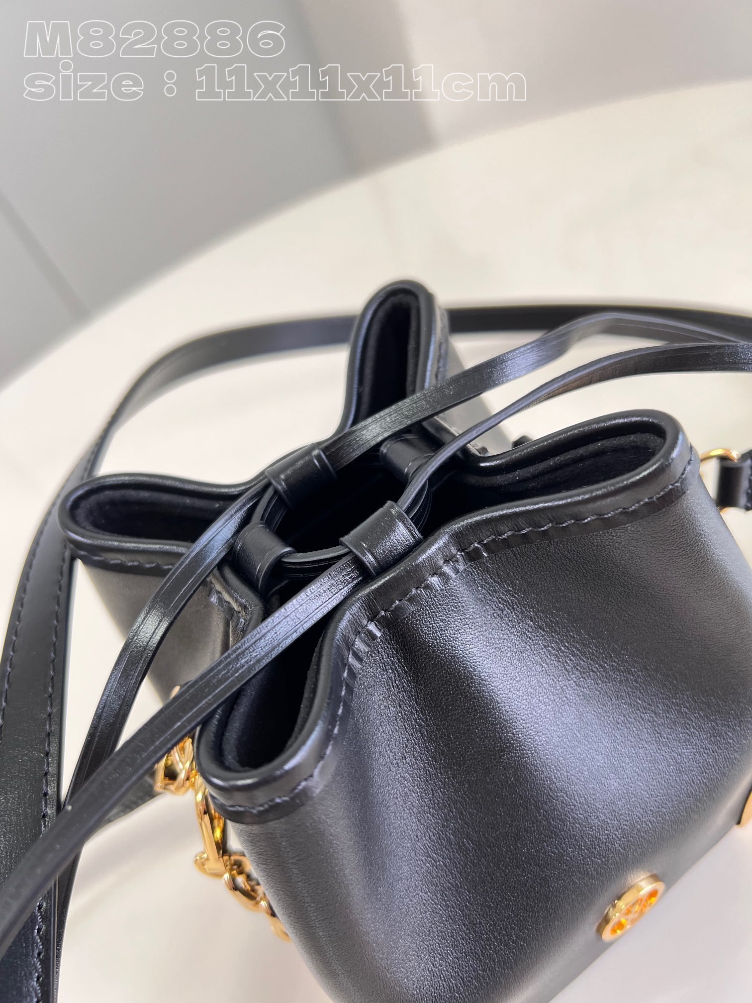 [Exclusive real shot M82886 black] Online Only handbag The modern and exquisite Noepos is presented in soft leather material. A specially produced item by designer Nicola Jaskier to commemorate the fashion show in South Korea. The compact design is reminiscent of the « luck bag », a traditional Korean pocket that symbolizes good fortune. The LV ring and the metal corners inspired by the trunk have emotional details. A luxurious bag for everyday looks and evening wear. 11.5 x 11.5 x 11.5 cm (length x height x width)