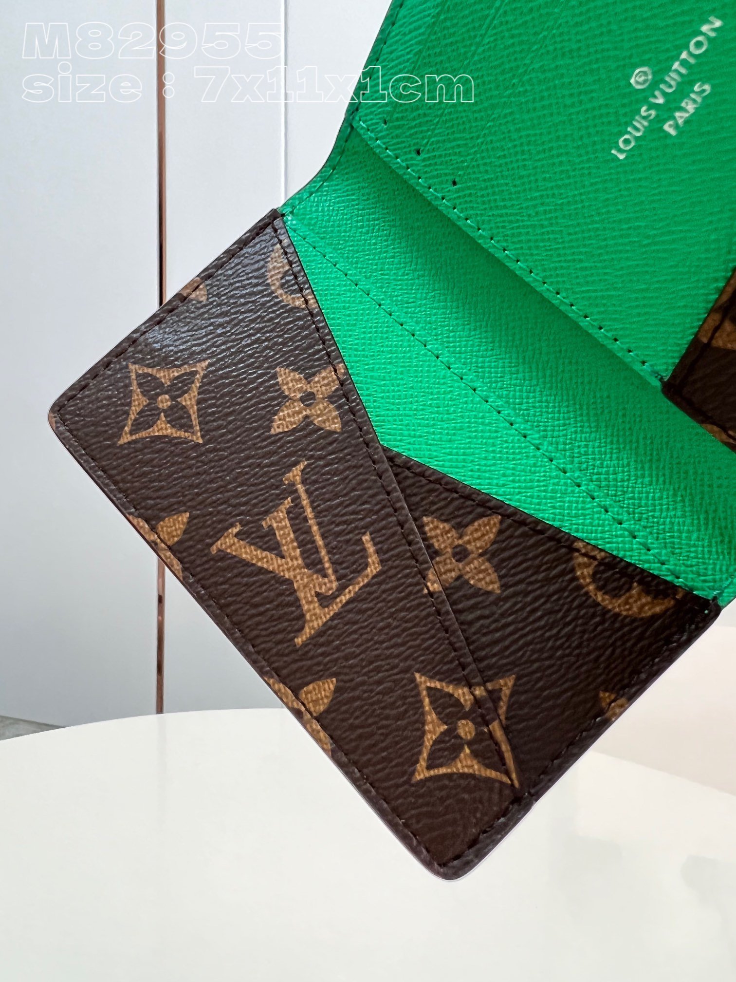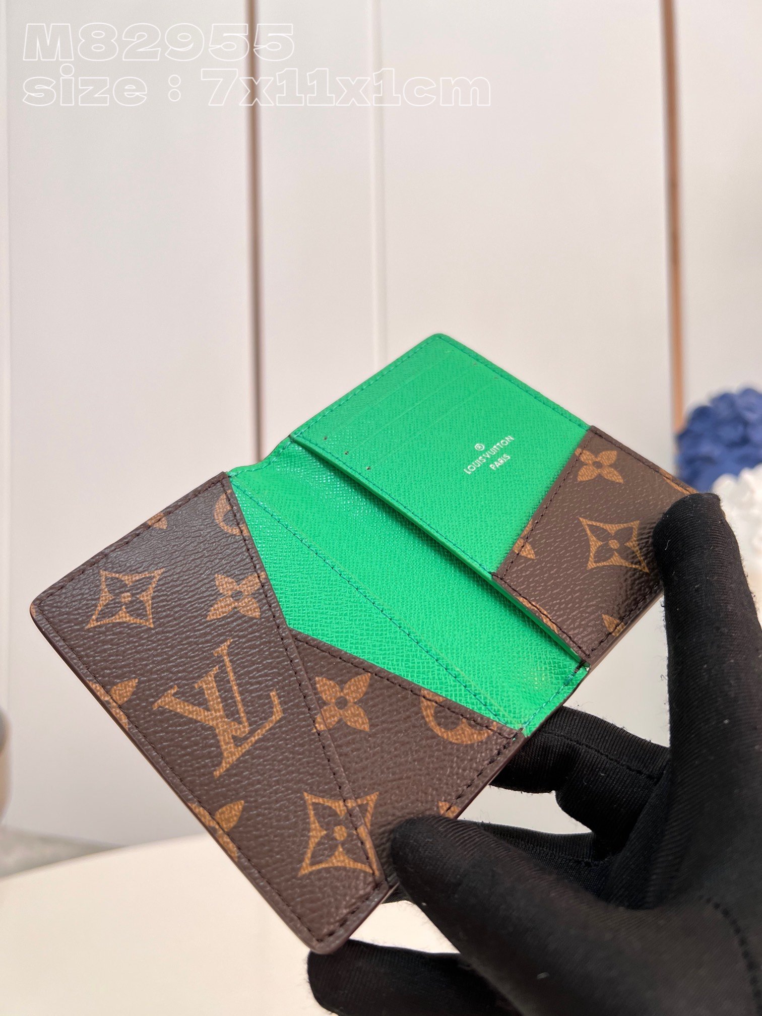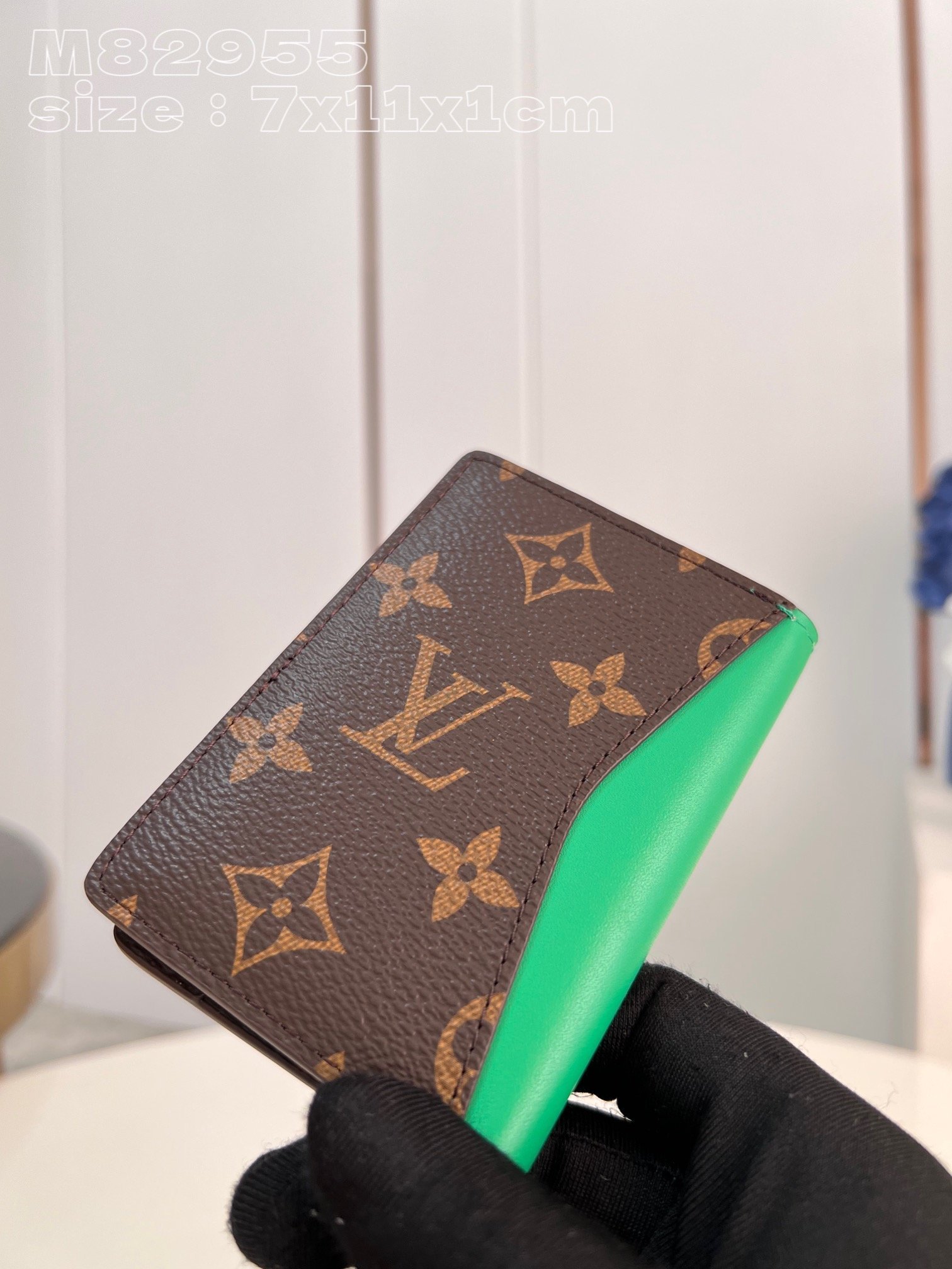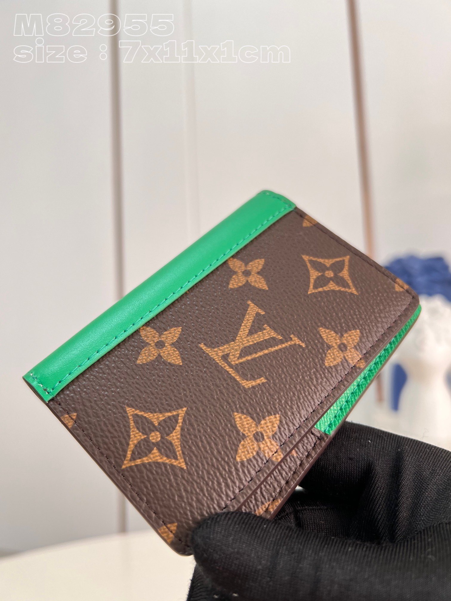 [Exclusive real shot M82955 green] This pocket wallet is made of Monogram Macassar coated canvas, with bright colors for the cow leather trim and neat interior. Compact construction with pockets, card slot and exterior pocket for credit cards and transit cards. 7.5 x 11.1 x 1 cm (length x height x width)
