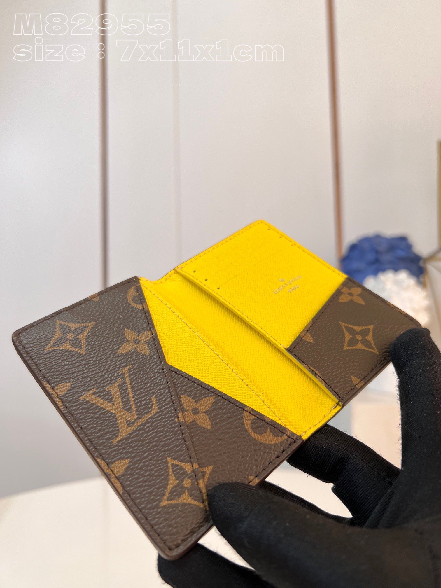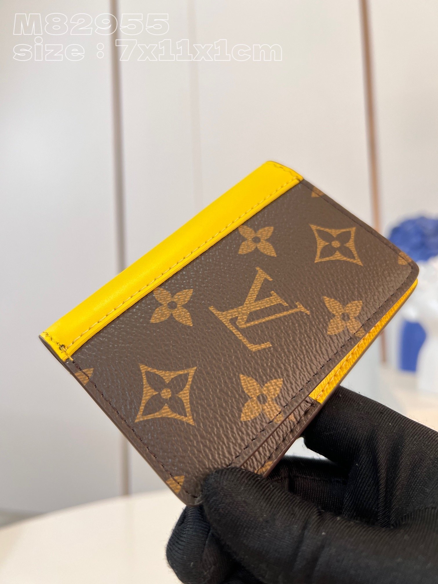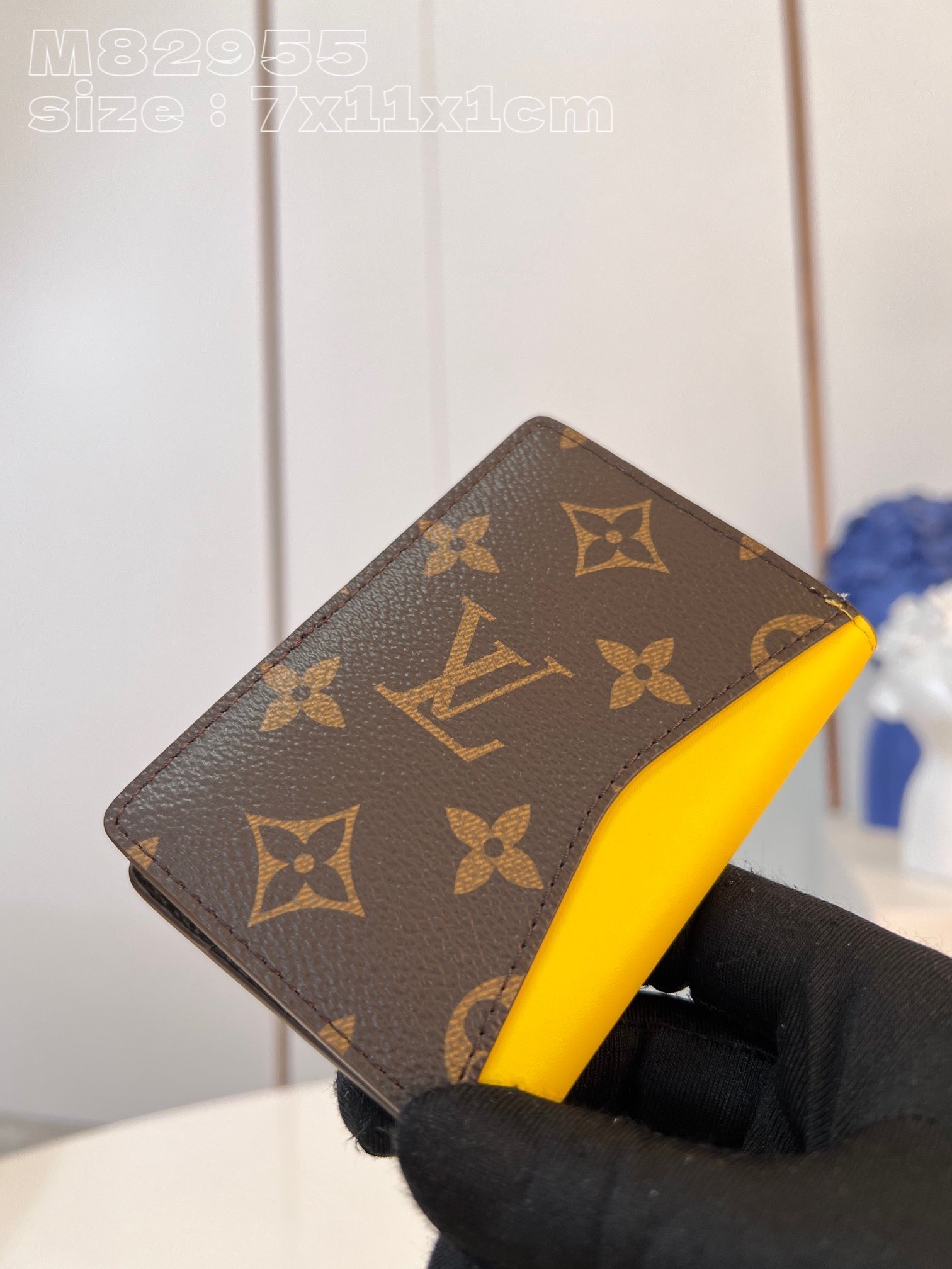 [Exclusive real shot M82955 yellow] This pocket wallet is made of Monogram Macassar coated canvas, with bright colors for the cow leather trim and neat interior. Compact construction with pockets, card slot and exterior pocket for credit cards and transit cards. 7.5 x 11.1 x 1 cm (length x height x width)