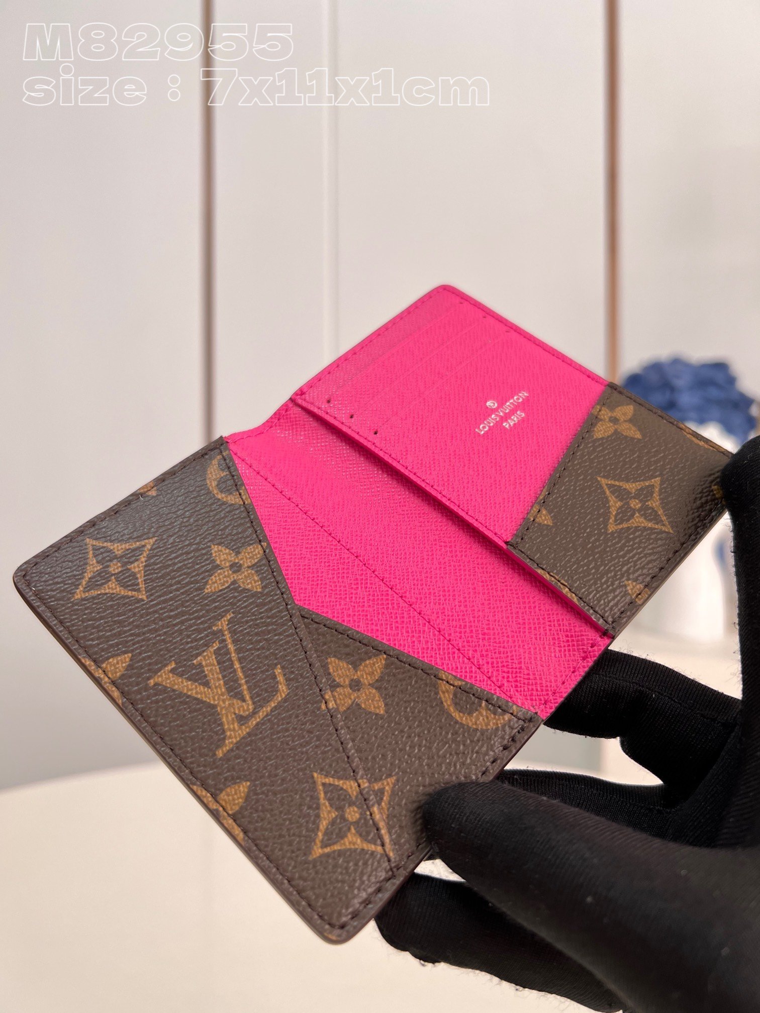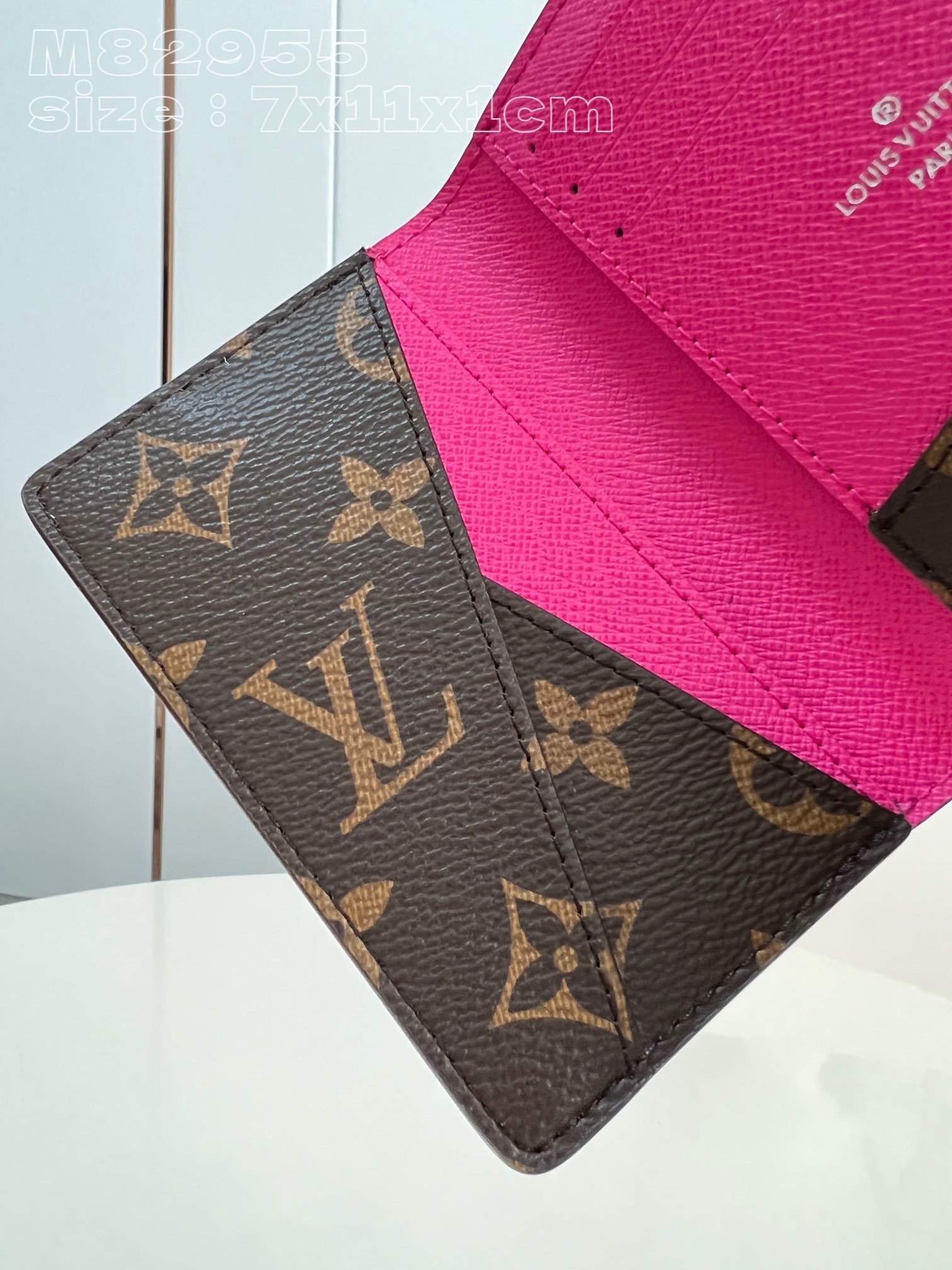 [Exclusive real shot M82955 rose red] This pocket wallet is made of Monogram Macassar coated canvas, with bright colors for the cow leather trim and neat interior. Compact construction with pockets, card slot and exterior pocket for credit cards and transit cards. 7.5 x 11.1 x 1 cm (length x height x width)
