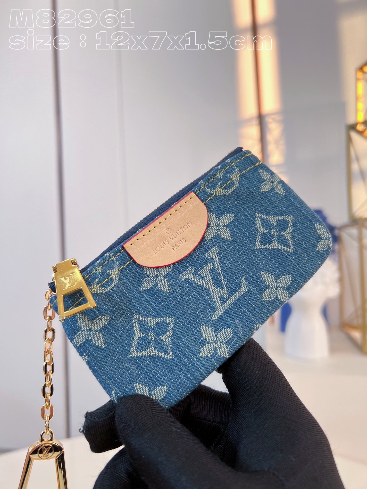 [Exclusive real shot M82961] This key coin purse is made of Monogram jacquard denim with matching calfskin trim. It uses jacquard fabric technology to reinterpret the classic Monogram DLd pattern and create a stonewashed denim effect. 12 x 7 x 1.5 cm