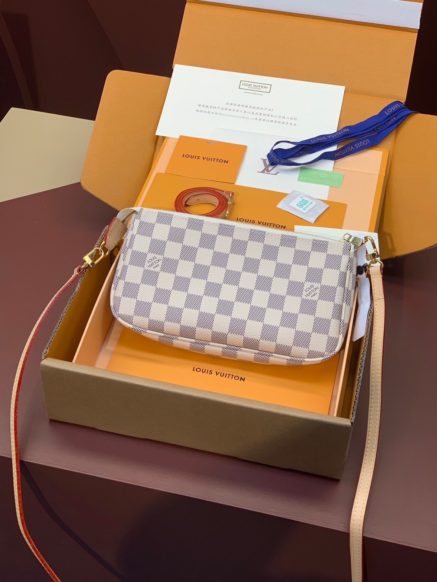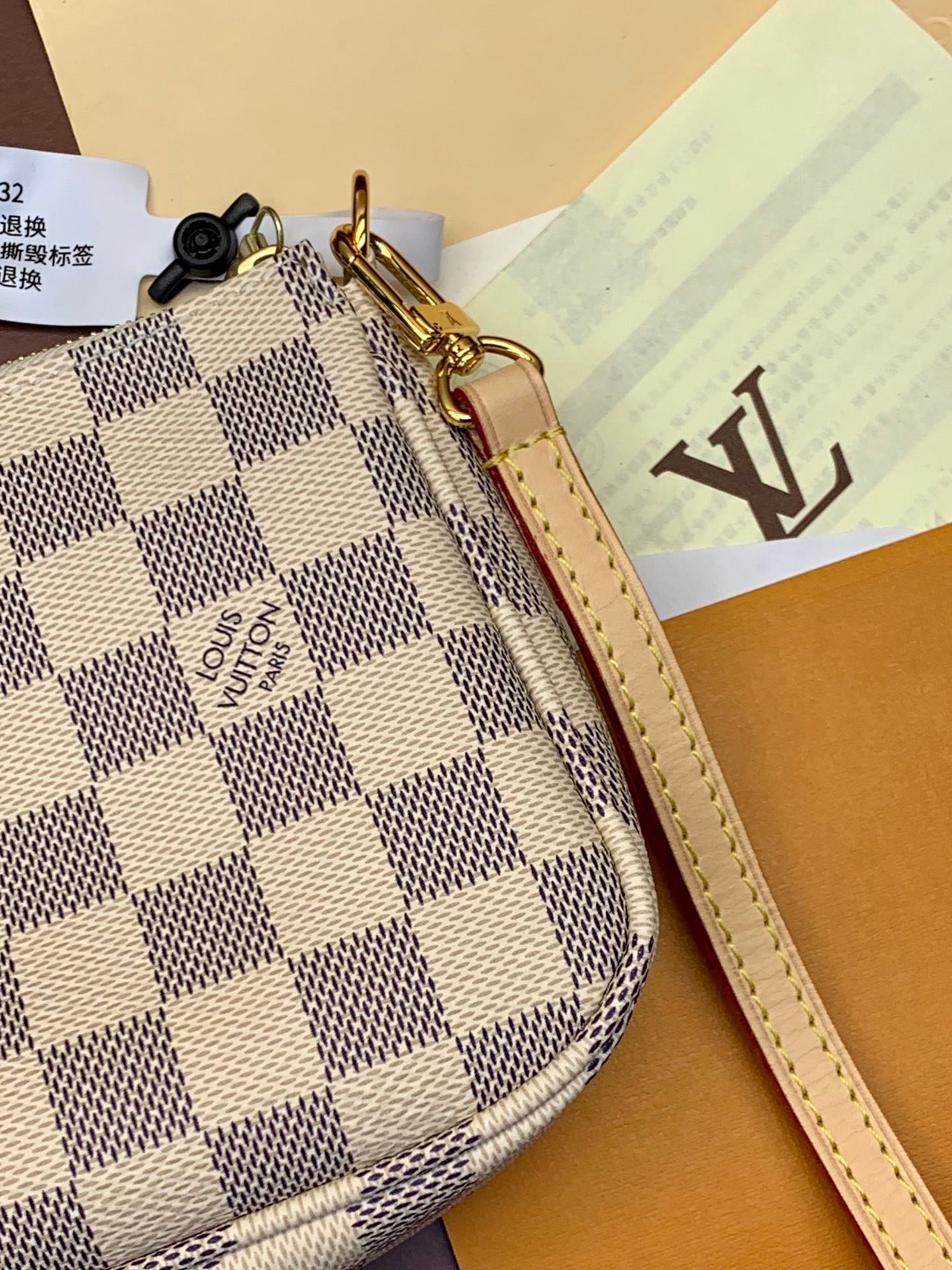 Upgraded version ⚠️. N41207 White grid! Mahjong bag, this accessory bag is an everlasting classic. It is made of canvas and is a small, lightweight and convenient bag that can be carried by hand. Crossbody, it is a classic style that you can carry on any occasion. The zipper style design makes it more convenient to use. Dimensions: 21 x 13 x 3 cm