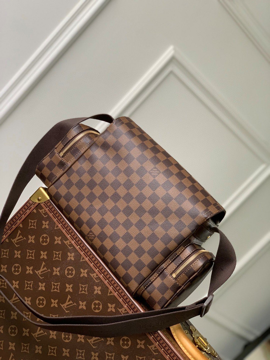 Second-hand camera bag, multi-pocket design allows it to hold large and small documents, iPad and other items, making it an ideal choice for urban men. The gorgeous Damier Ebène canvas completes the look.