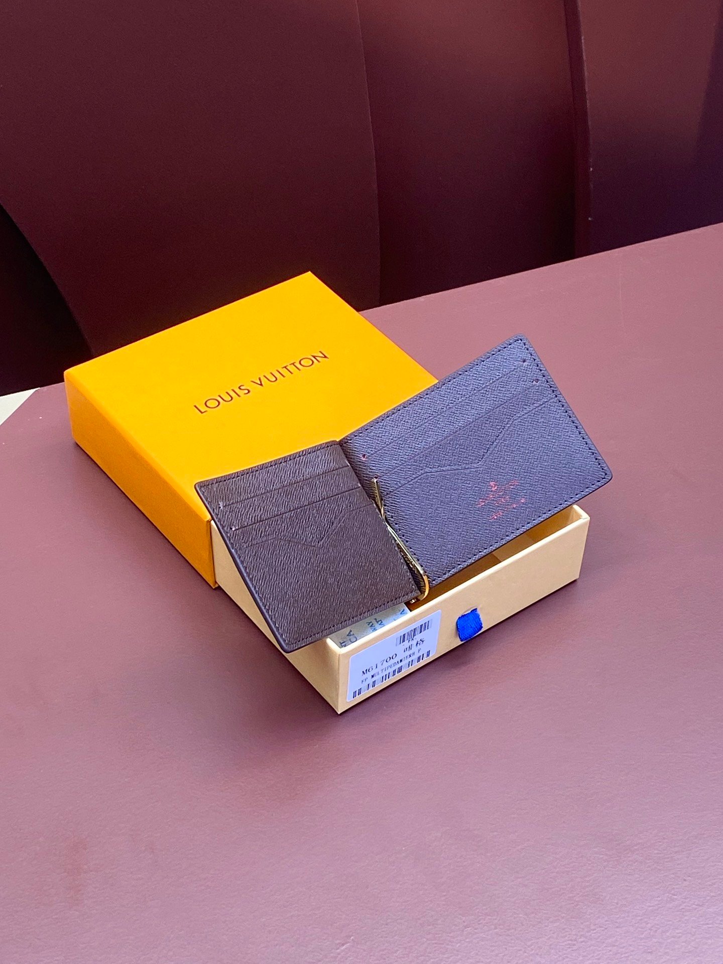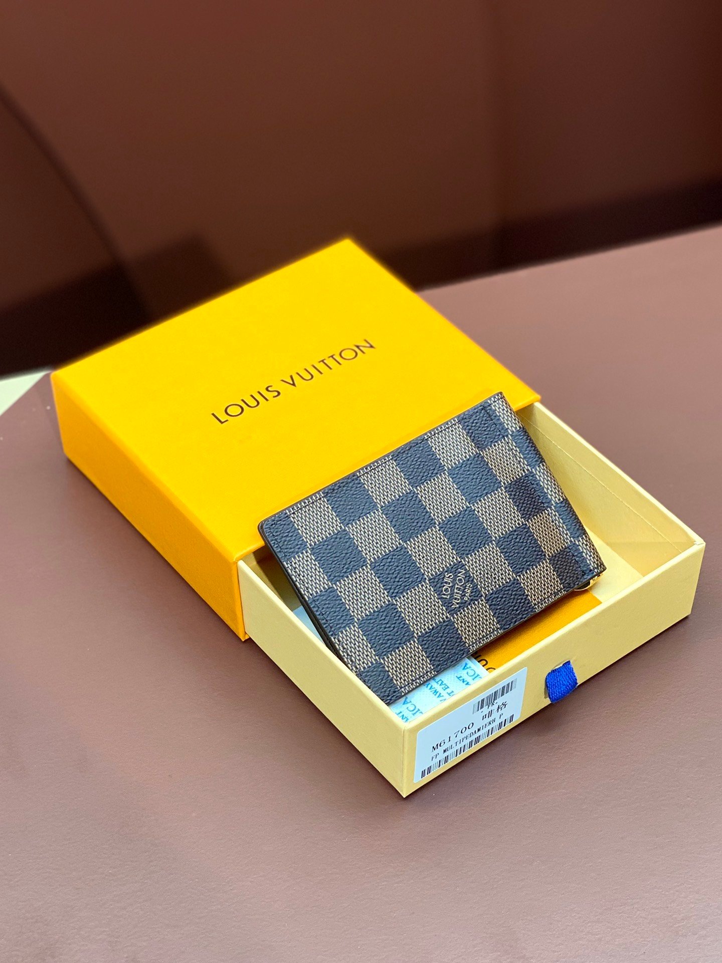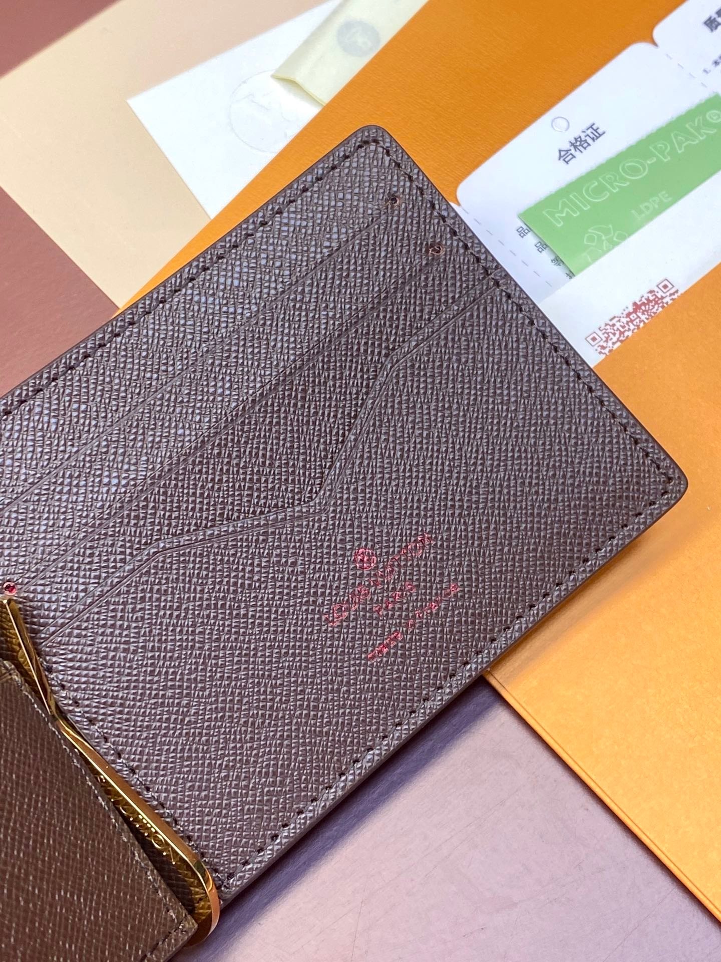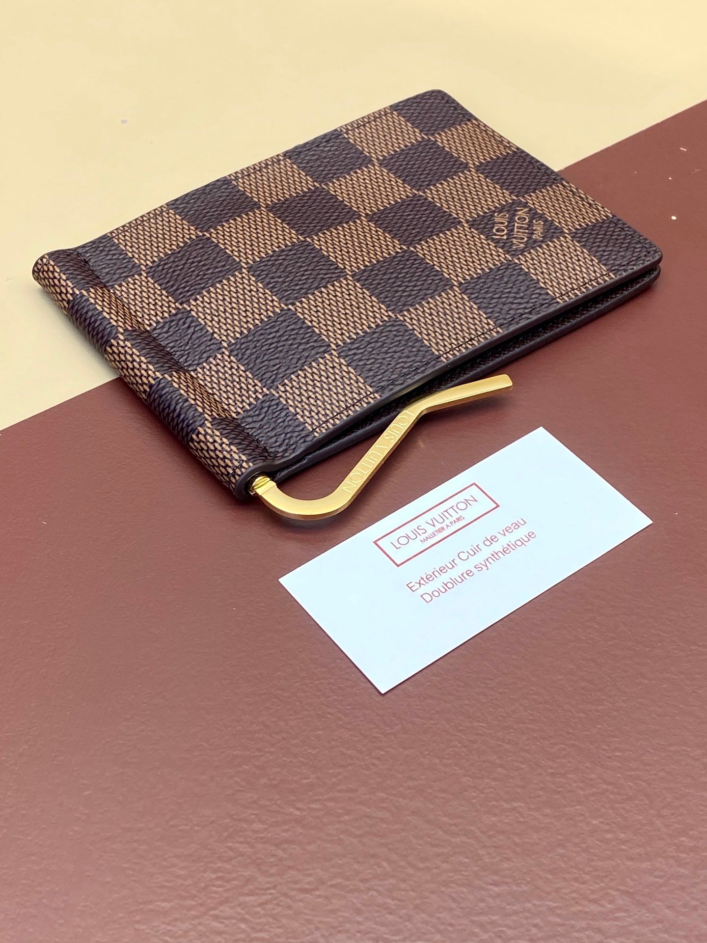 Steel buckle dollar clip! N61700 brown! The best place to store banknotes is that they have a flat appearance and can be easily stored in a coat or trouser pocket. Practical and portable, it has a rotating clip that can be used to hold cards and receipts. Size: 12*8cm.