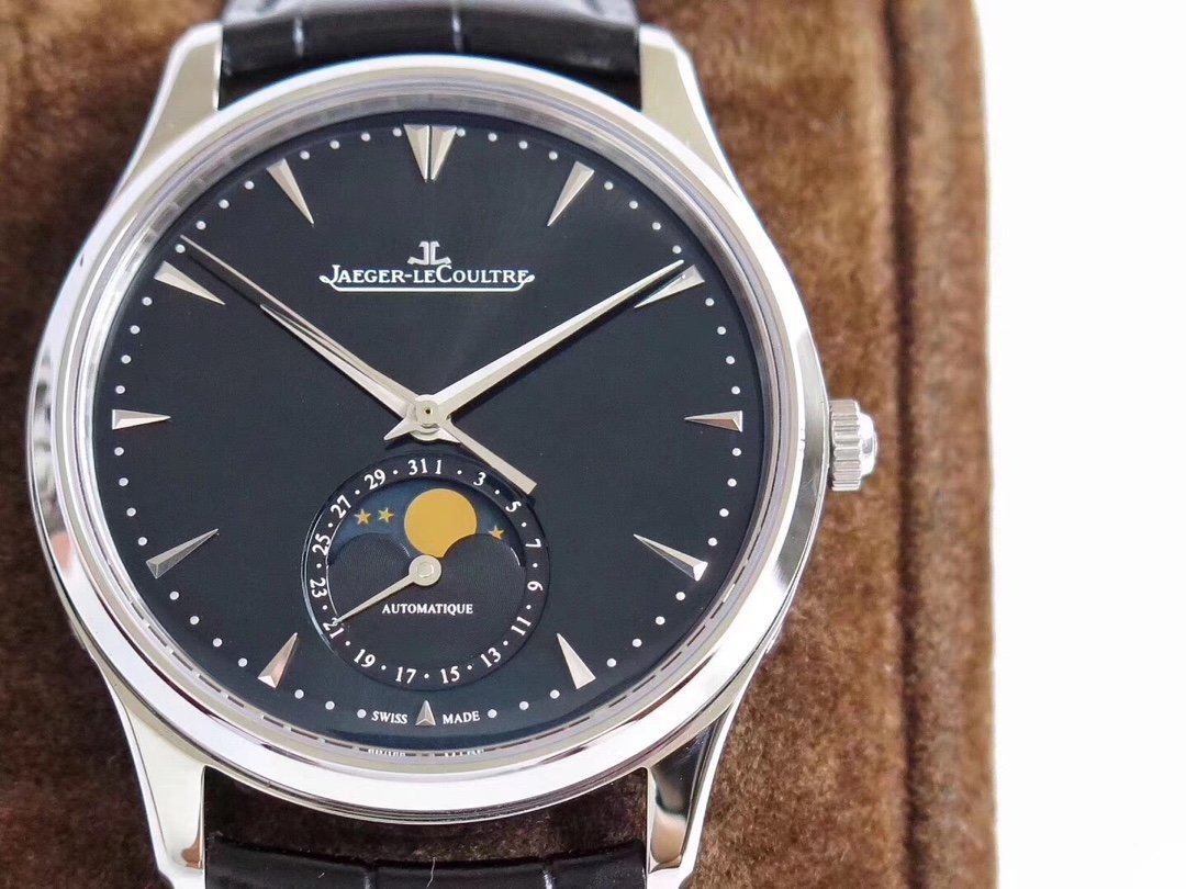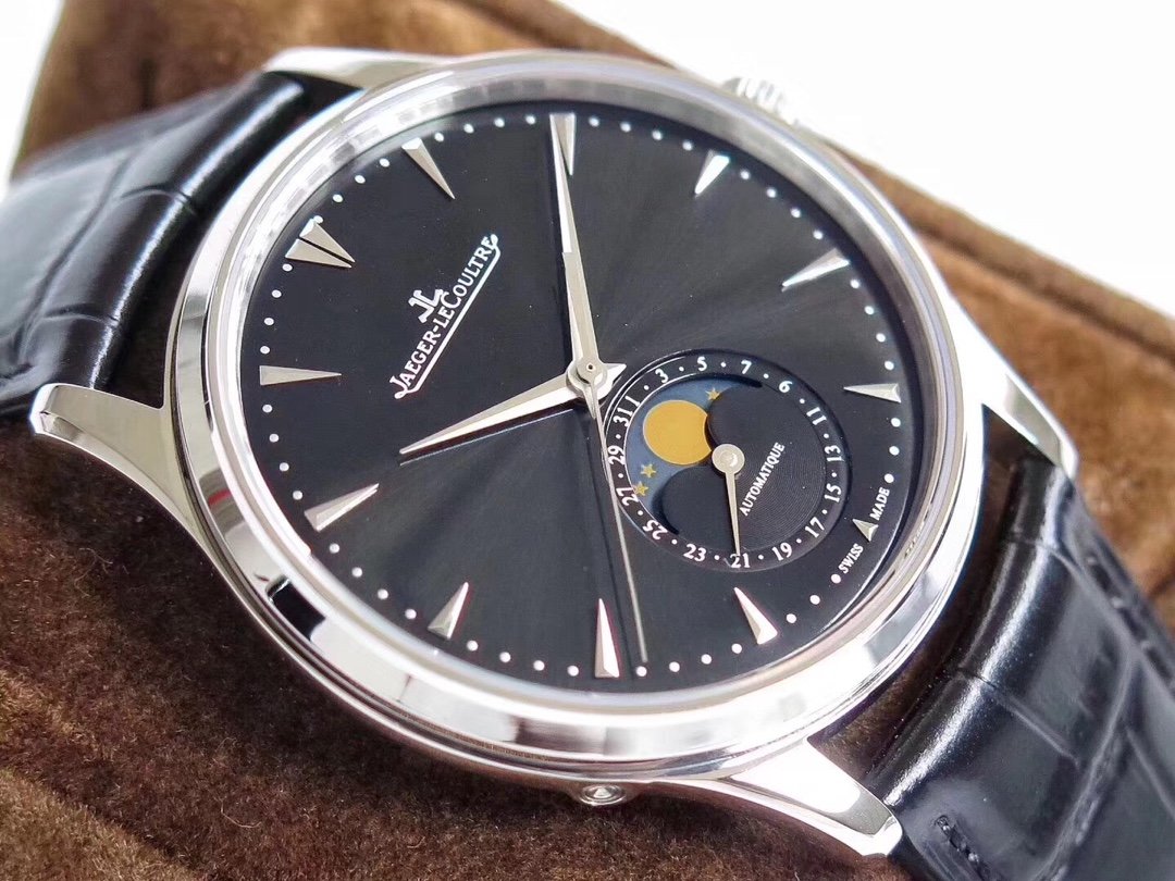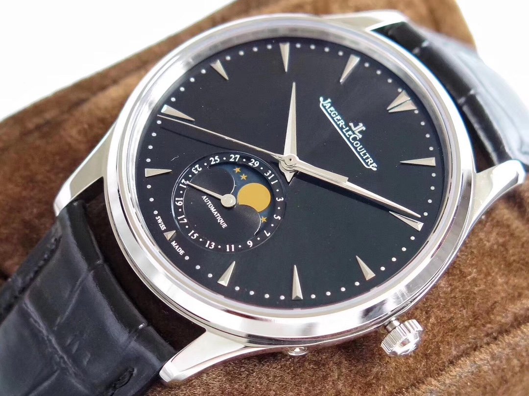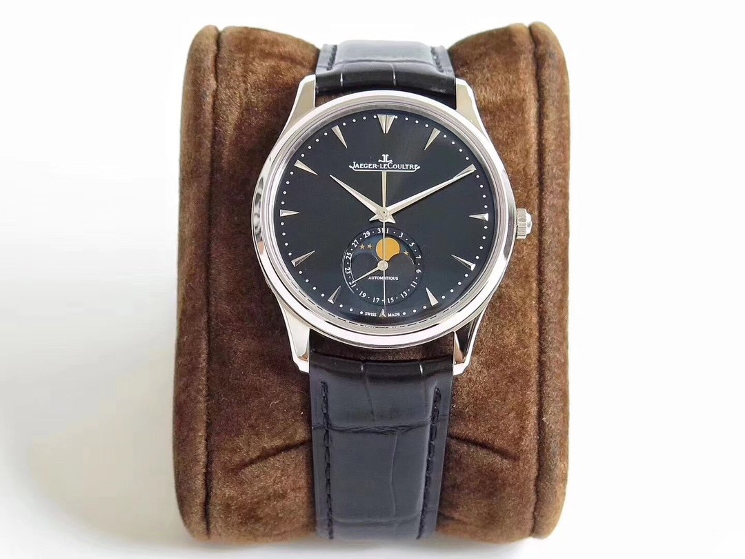 Master Ultra Thin Moon SS ZF 1:1 Best Edition Black Dial on Black Leather Strap A925