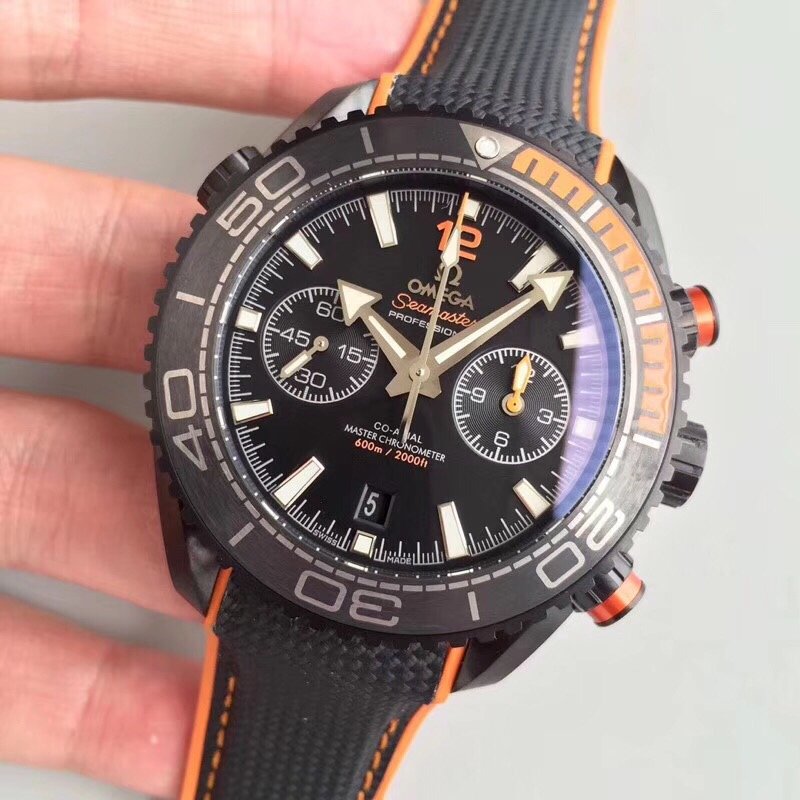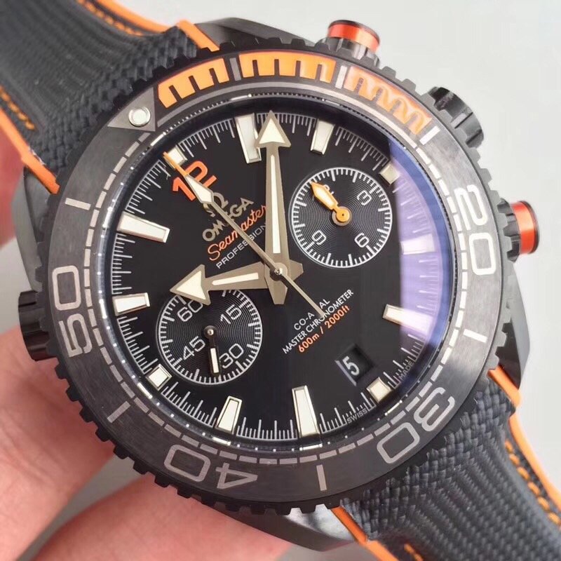 Planet Ocean Master Chronometer Chrono DLC OM 1:1 Best Edition Black Dial on Nylon Strap A9900