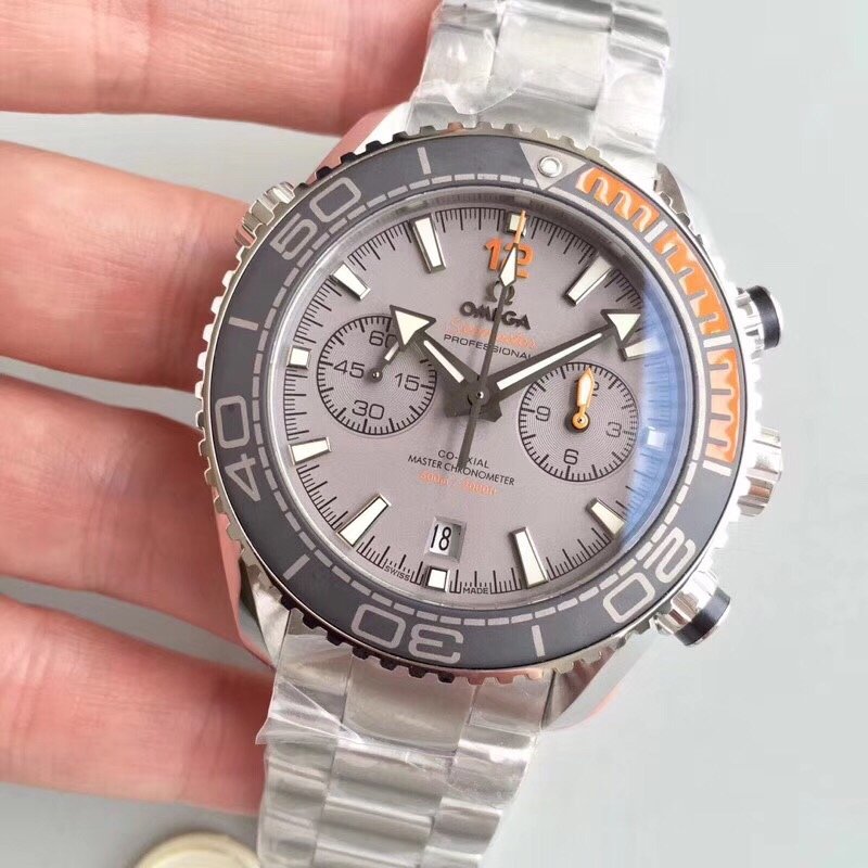 Planet Ocean Master Chronometer Chrono DLC OM 1:1 Best Edition Grey Dial on SS Bracelet