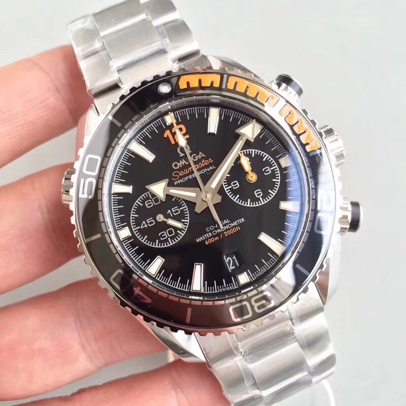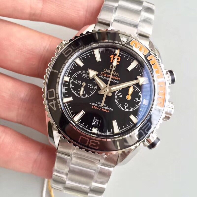 Planet Ocean Master Chronometer Chrono DLC OM 1:1 Best Edition Black Dial on SS Bracelet
