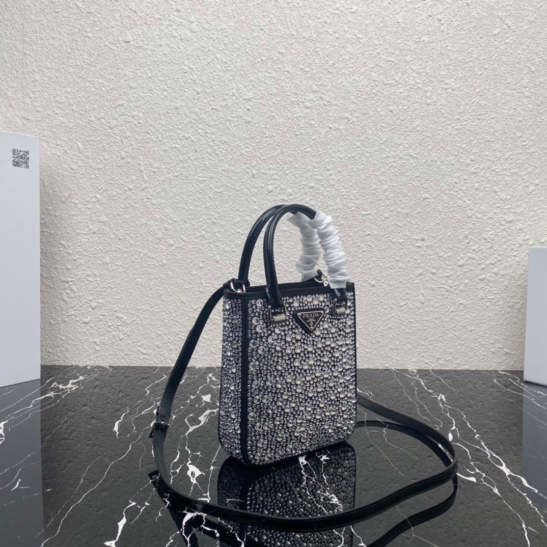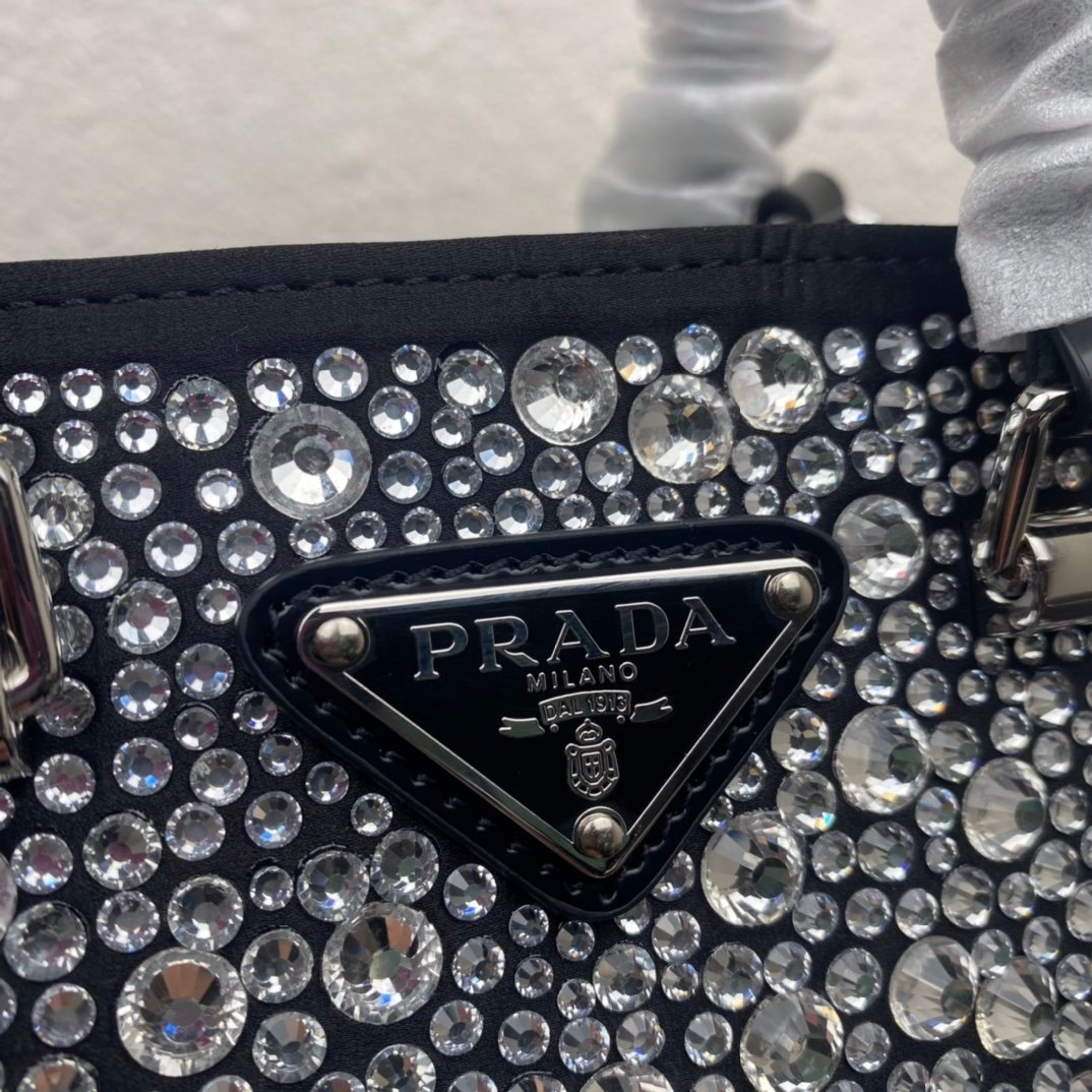 [Top Original Order] Gypsophila Tote Bag ????1BA331???? This satin tote bag is covered with sparkling imported crystals of different sizes. The hand strap and adjustable long shoulder strap are made of cowhide, which is easy to carry and designed to be worn cross-body, giving it a refined charm. . The retro curved silhouette is unique. This starry tote bag looks more feminine, elegant and modern. So beautiful????Everywhere I go, I turn heads.