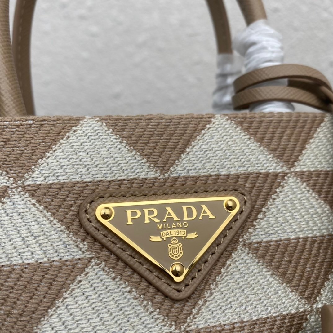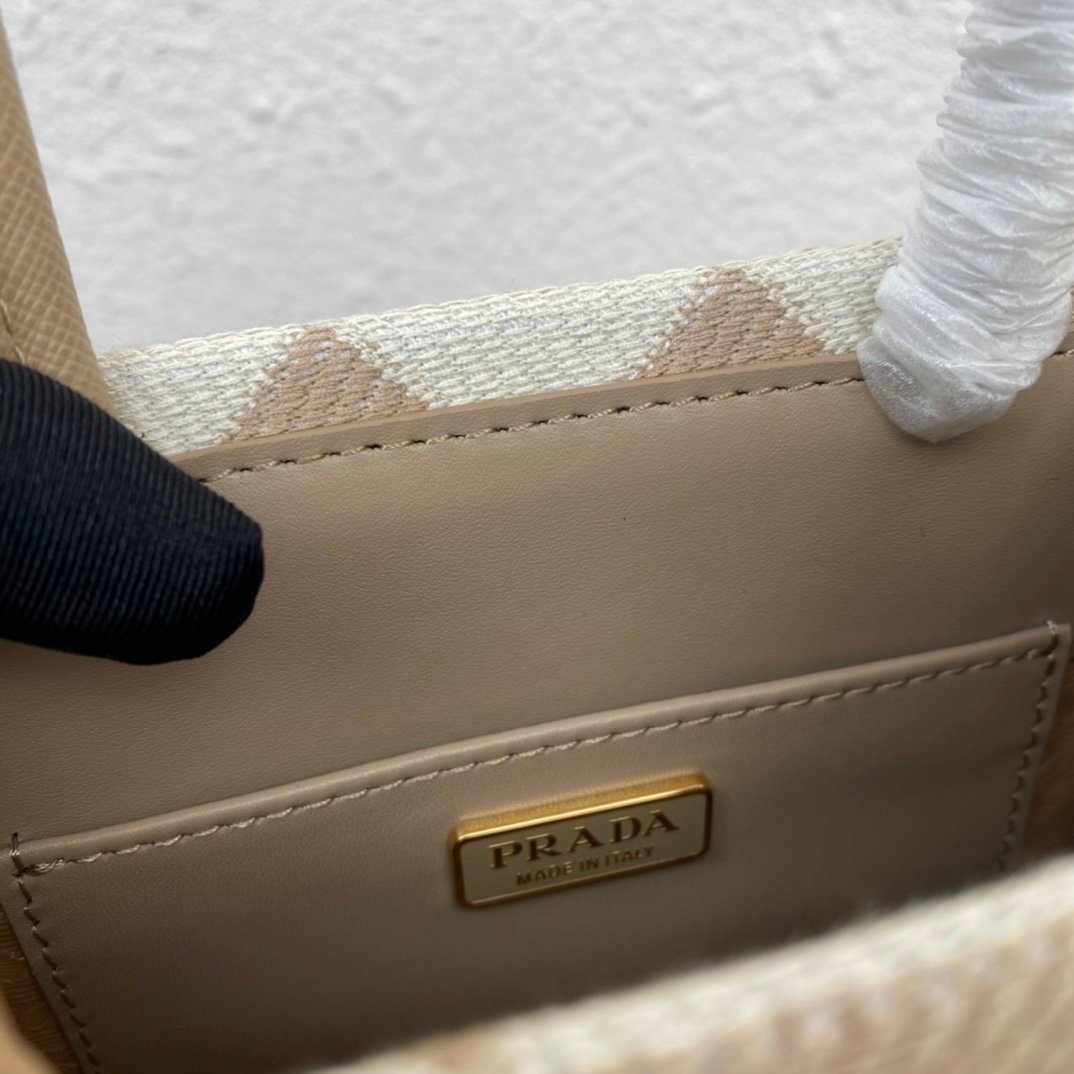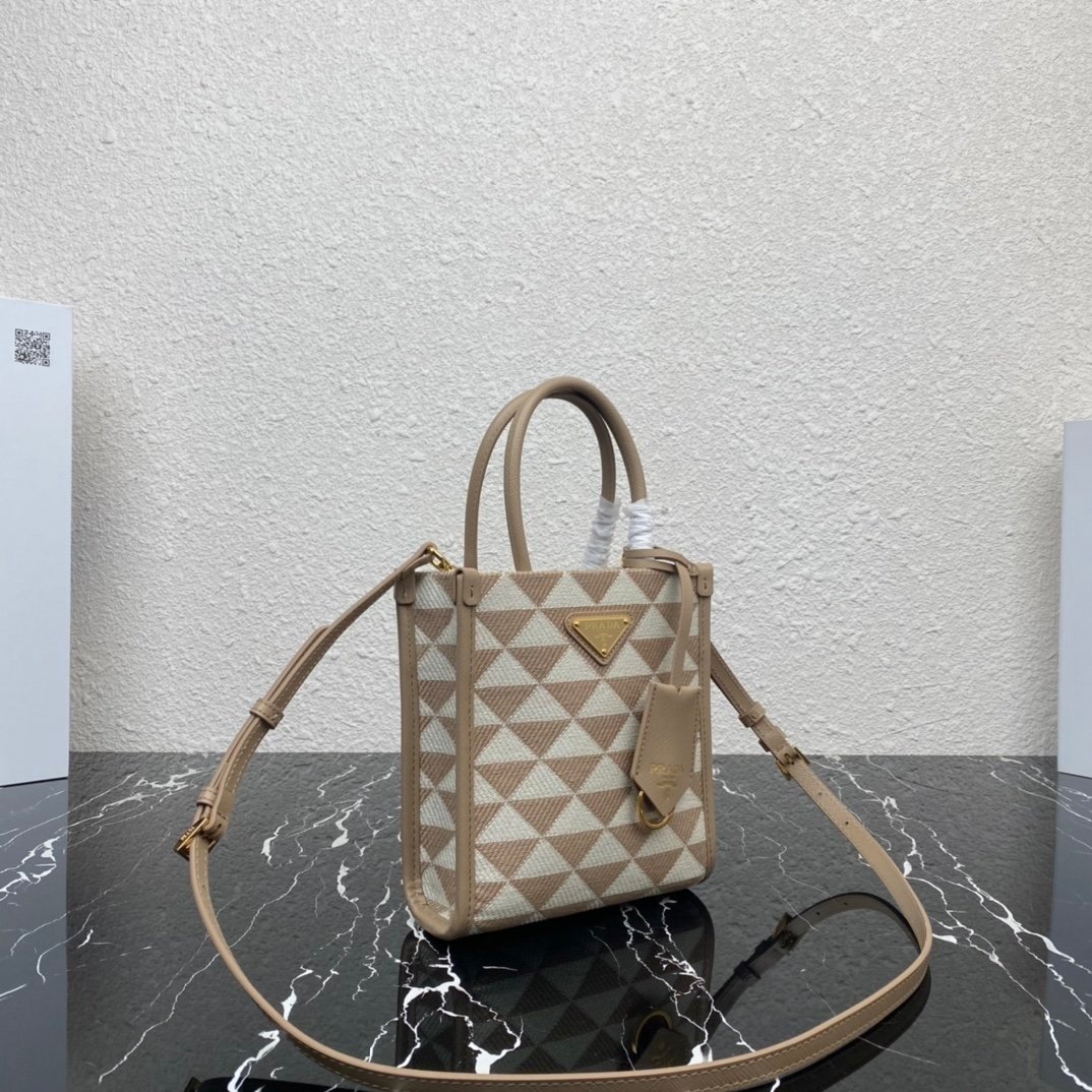 [Top original order] Embroidered fabric tote bag ???? 1BA355 small ???? Has long shoulder strap ???? This embroidered tote bag is made of imported Saffiano leather and unique embroidered fabric ???? The small size is designed with Saffiano leather handles, 110 cm detachable and adjustable Saffiano leather long shoulder strap, so beautiful. Dimensions: length 17x height 19x bottom 6cm