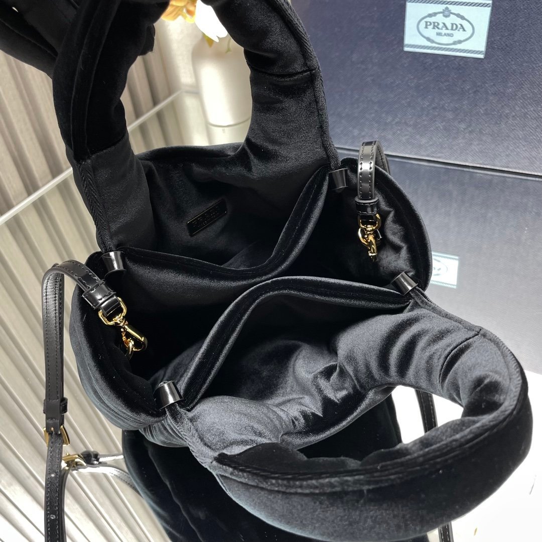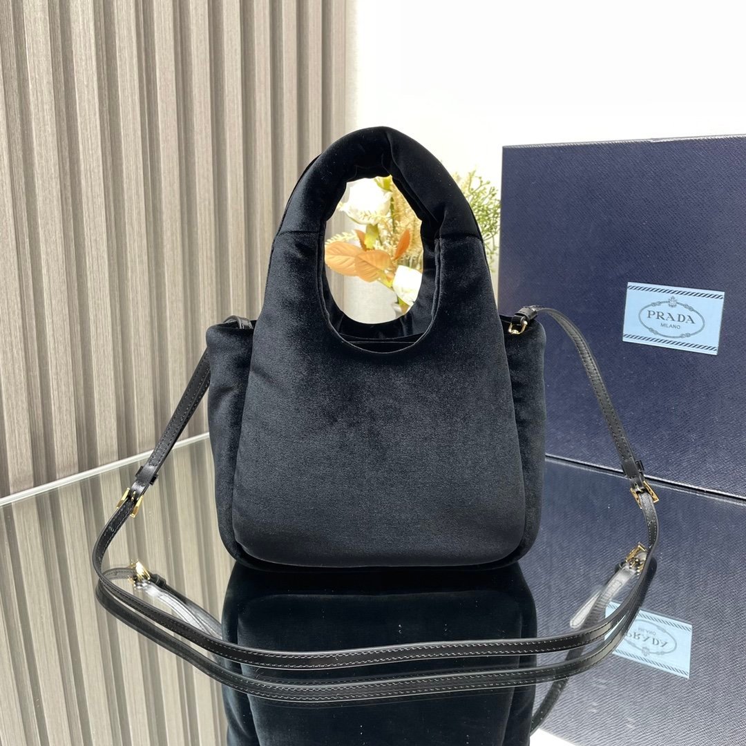 [Top Original Order] New Velvet Vegetable Basket ????1BA410 This velvet mini handbag has soft volume and smooth lines. Elegant and modern accessories are decorated with the iconic enameled metal triangle logo. Size: 16x14x7.5cm