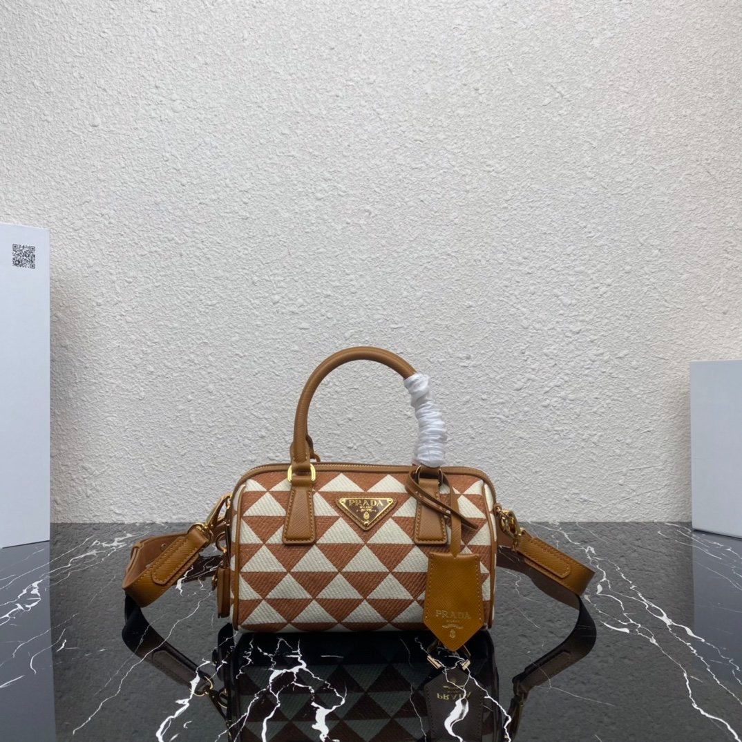 [Top original order] New embroidered fabric bag????1BB846 pillow bag????This embroidered pillow bag is made of imported Saffiano leather and unique embroidered fabric????It is equipped with a detachable long shoulder strap and can be carried by hand. Dimensions: length 20x height 11.5x bottom 11cm.