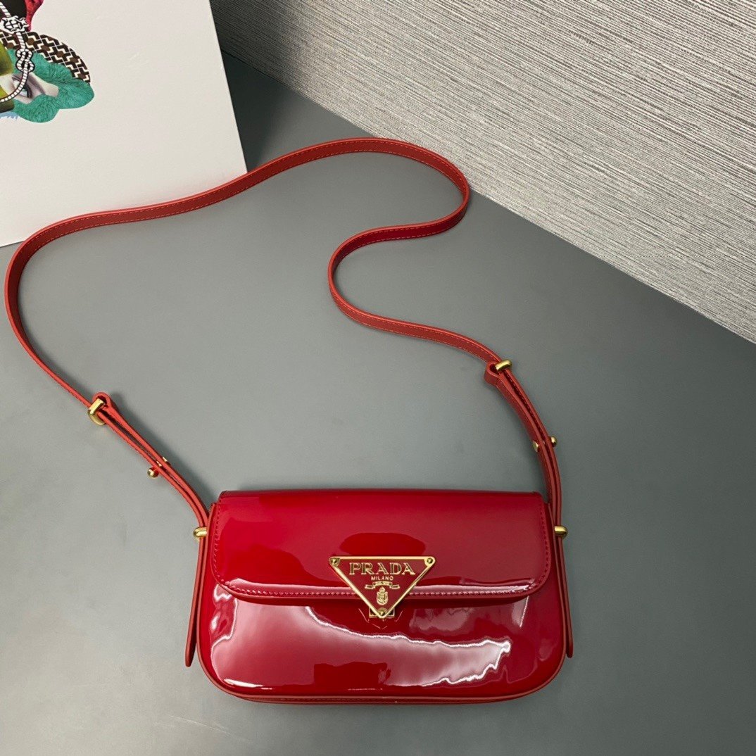 [Top Original] (Patent Leather) Counter ????New Stewardess Bag ????1BD339, this retro and high-end bag is instantly recognizable. It is made of imported patent leather + unique triangle logo. The long shoulder strap is adjustable and can be worn on one shoulder or crossbody. Full of high-end feeling! The upper body instantly transforms into a girly girl, with large capacity and space, versatile for all kinds of wear????Dimensions: Length 20.5x Height 10.5x Bottom 4cm