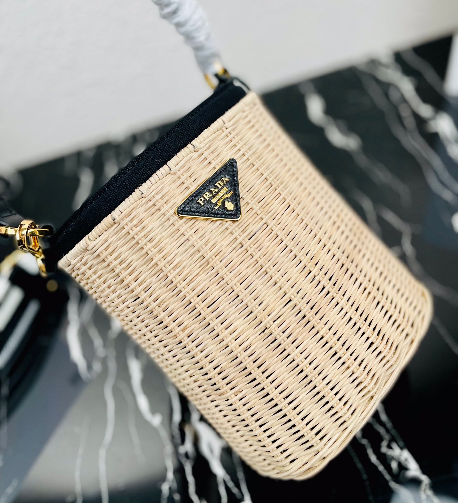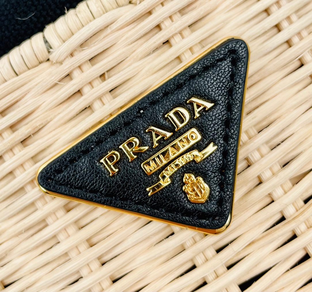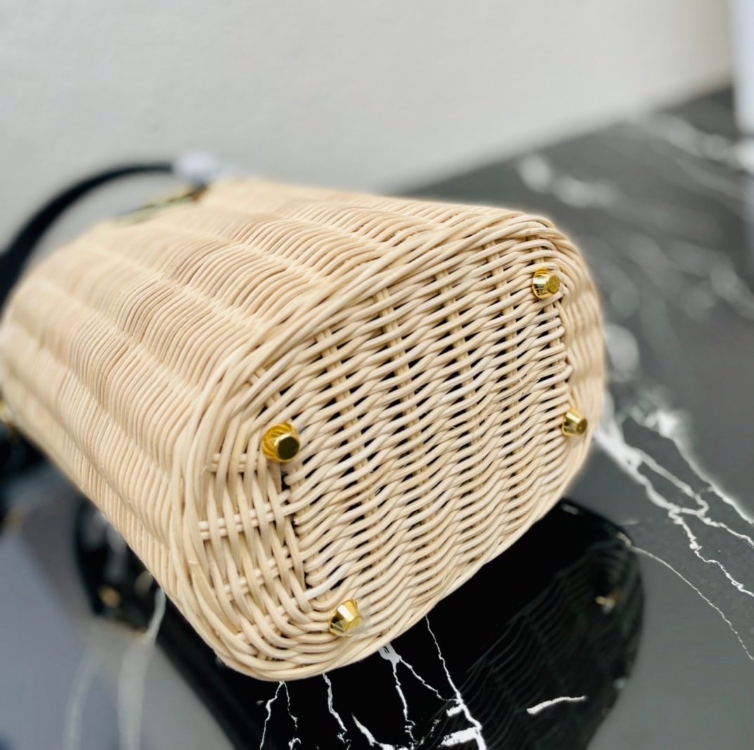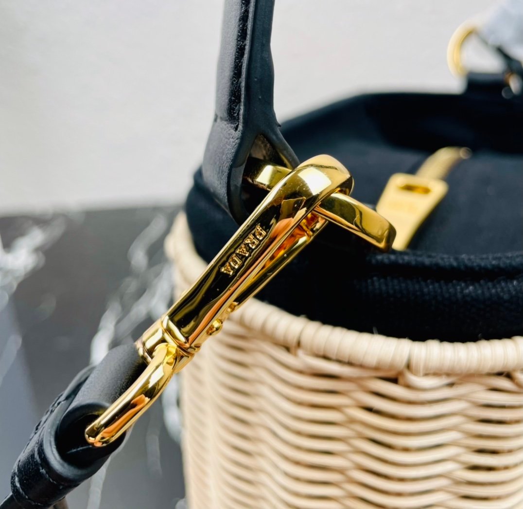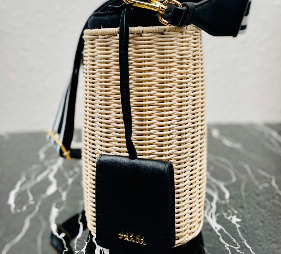 [Top original order] ✨New product debut✨ 2022 summer latest model 1BE062 wicker and canvas bucket bag???????? This shoulder bag is made of wicker and canvas, and the mixed materials give the new season Prada accessories unique characteristics. Feminine silhouettes and sophisticated details accentuate the design. Equipped with an adjustable embroidered webbing shoulder strap decorated with a contrasting logo, a 95cm detachable logo-printed embroidered webbing shoulder strap, and a detachable leather cosmetic mirror case, the diverse functionality and eye-catching style are at a glance, filled with summer style????️Size: Length 18cm *Height 19cm*Width 11cm