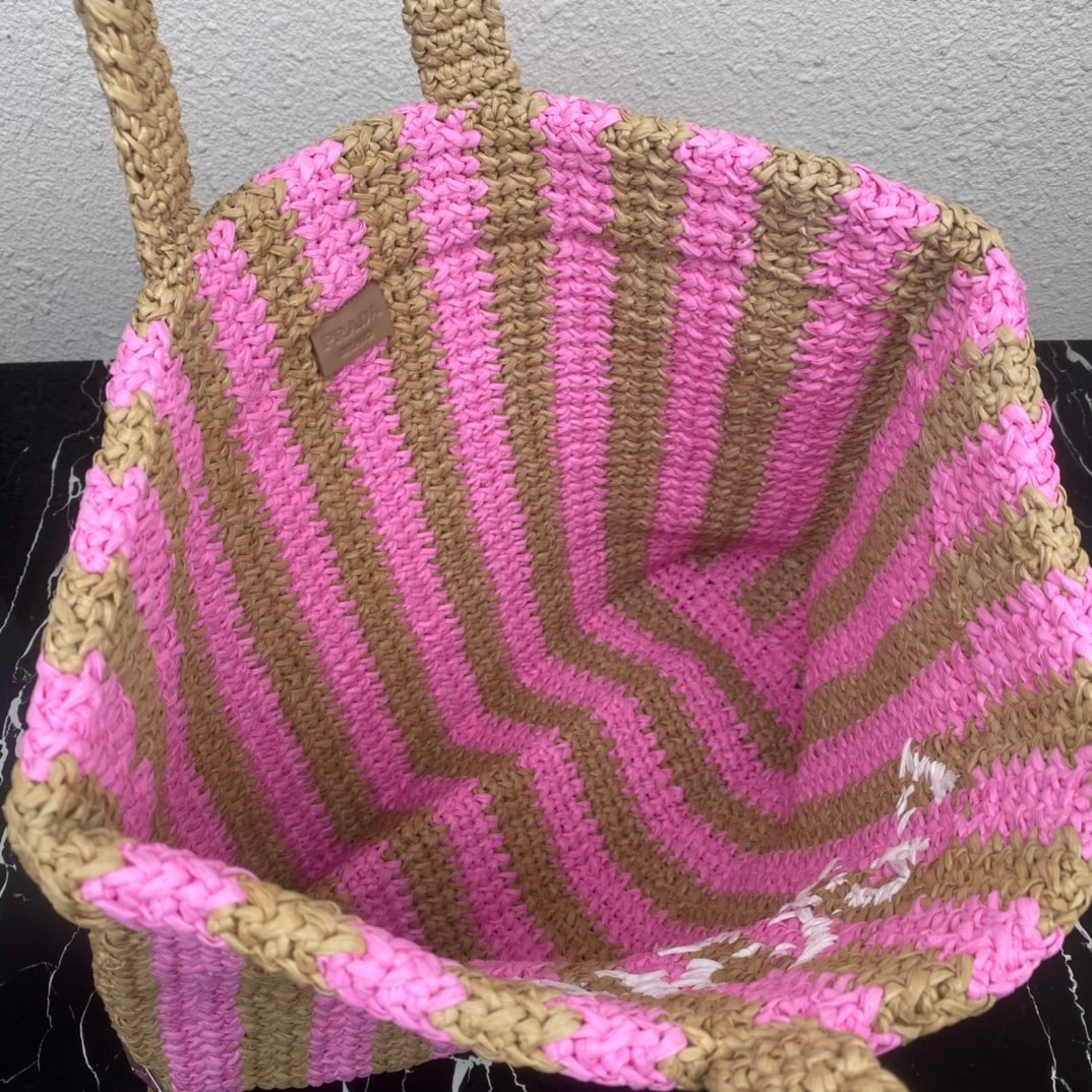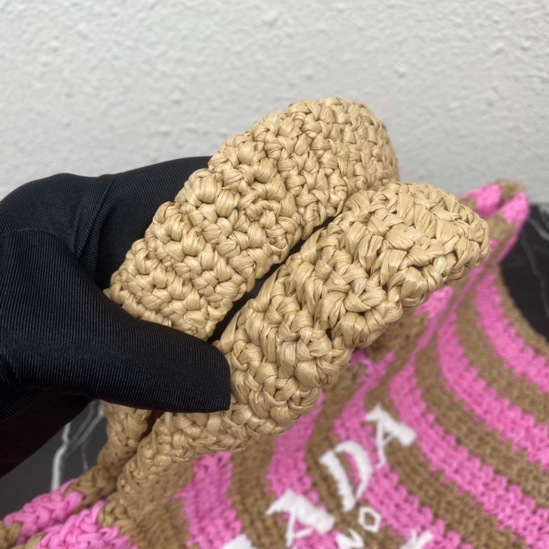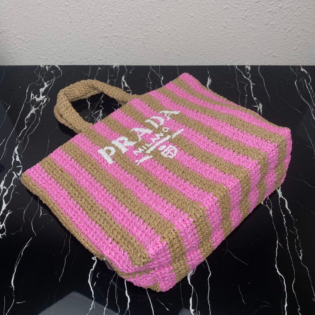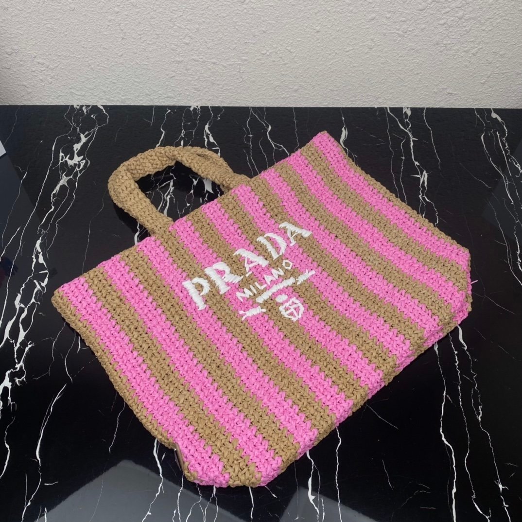 [Top original order] ✨New product debut✨2022 summer latest model 1BG392 raffia fiber large tote bag???? This tote bag is made of lightweight natural raffia fiber that is full of summer style. The soft deconstructed design gives the bag a unique look Such modern charm. The iconic Prada lettering logo embroidery on the front subtly embellishes the silhouette. The striped pattern adds a contrasting element. It has such a summer style, and the effect of various combinations of clothes is very beautiful, so perfect, hurry up and get it????️Size: length 40cm*height 34*width 15cm????