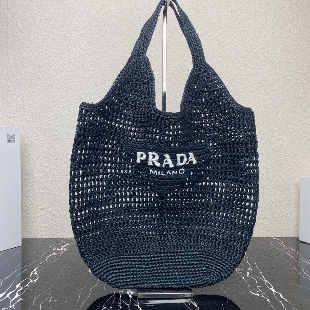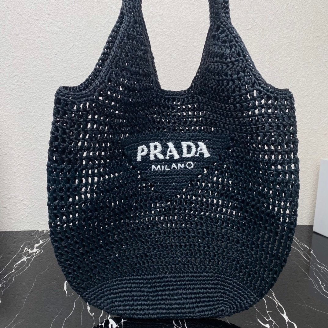 [Top original order] New raffia fiber tote bag????1BG424????This tote bag is made of raffia fiber and presents a soft deconstructed silhouette. Summery raffia is naturally derived and feels light. The body of the bag reinterprets the concept of beach bags in a novel and modern way, and the embroidered lettering logo adds a decorative element, which is beautiful. Size: length 51cm*height 45cm