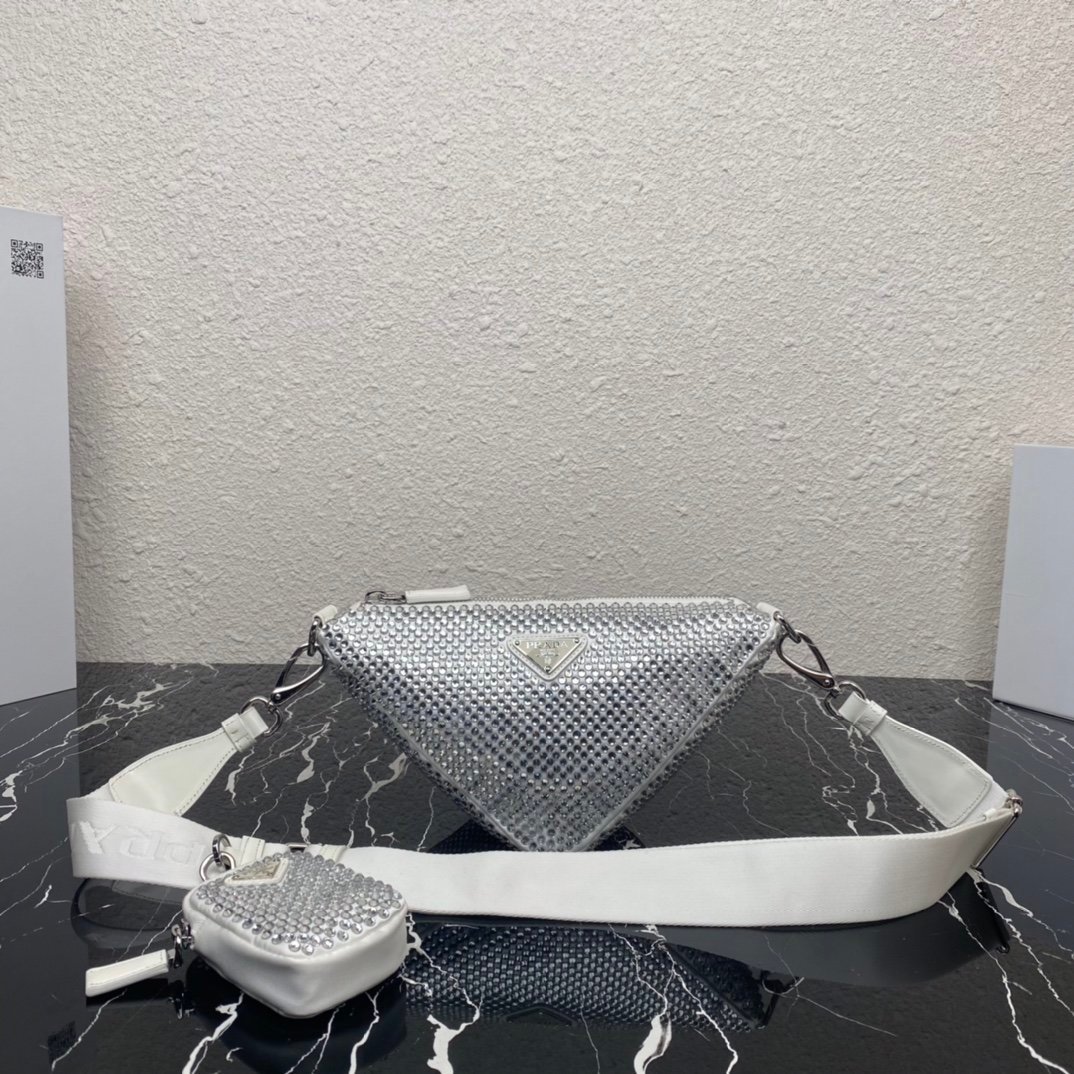 [Top original order] Sparkling diamond triangle bag 1BH190 has arrived????This triangle is a design inspiration inspired by the sparkling diamond geometric pattern, with fashionable and neat lines. It comes with a detachable shoulder strap. My favorite thing is that there is a small charm (small bag) hanging on the shoulder strap. It will be praised by people wherever you take it. This kind of diamond bag is also very easy to match with clothes. It’s cool and cool, and has a large capacity. Dimensions: length 26x height 14x bottom 12cm