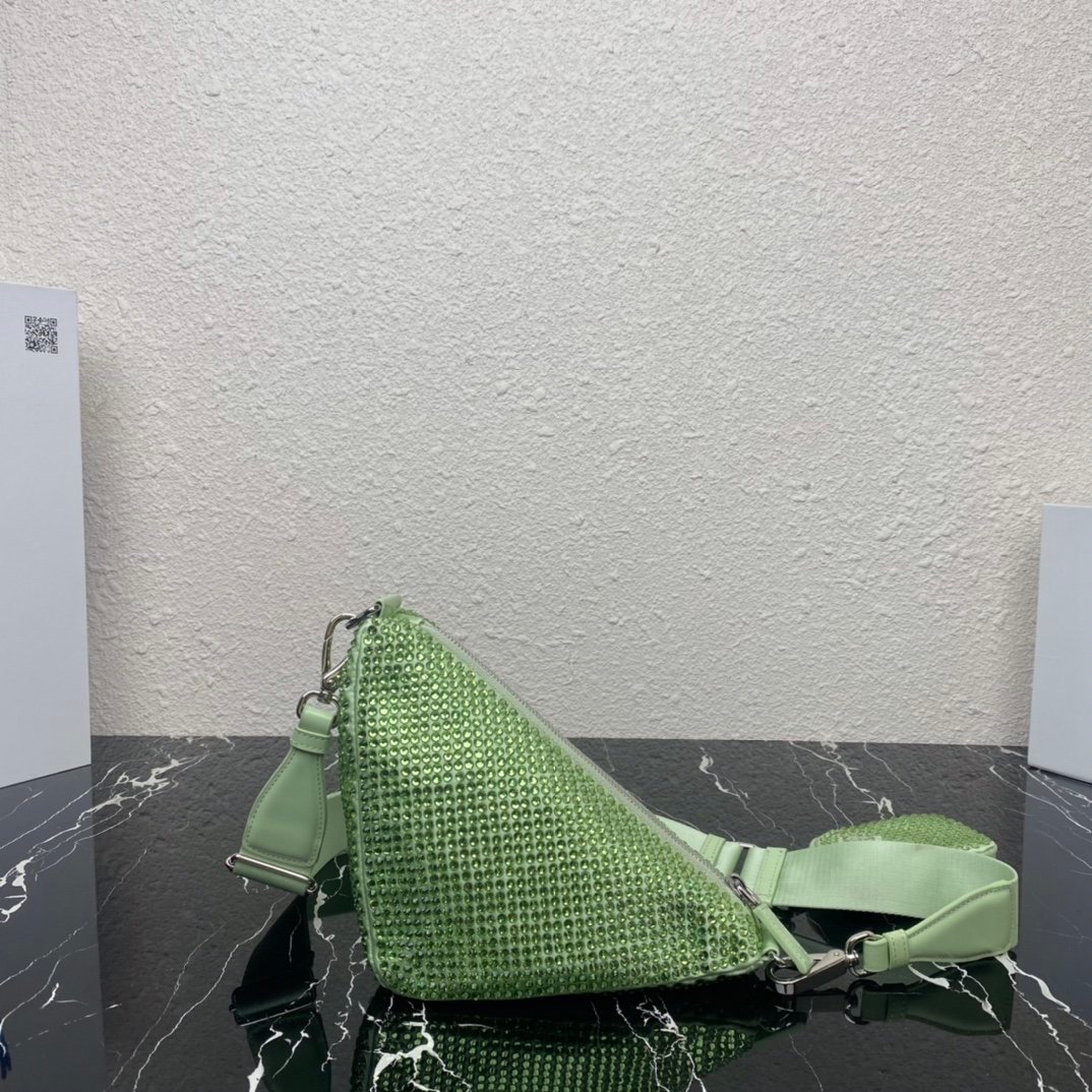 [Top original order] Sparkling diamond triangle bag 1BH190 has arrived????This triangle is a design inspiration inspired by the sparkling diamond geometric pattern, with fashionable and neat lines. It comes with a detachable shoulder strap. My favorite thing is that there is a small charm (small bag) hanging on the shoulder strap. It will be praised by people wherever you take it. This kind of diamond bag is also very easy to match with clothes. It’s cool and cool, and has a large capacity. Dimensions: length 26x height 14x bottom 12cm