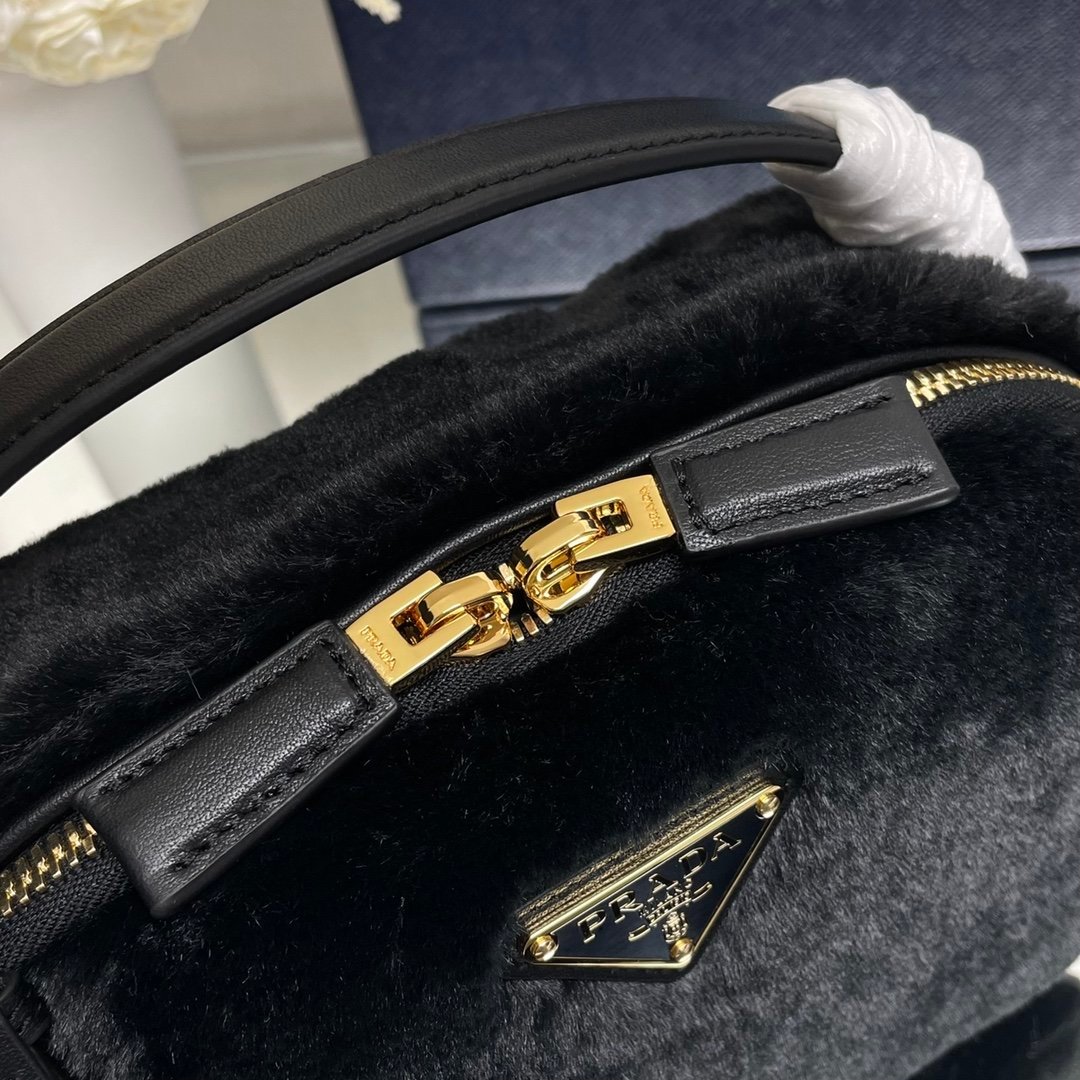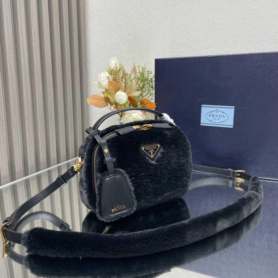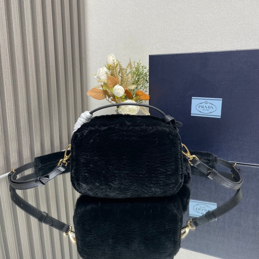 [Top original order] P’s new mini handbag ????1BH208 wool????????This mini handbag has a crisp structure and versatile style. It is paired with soft shearling to highlight its winter charm. Leather details are complemented by a two-way zip closure and metal hardware, finished with an enameled metal triangle logo. Interior is equipped with imported lambskin, a must-have item in winter???? Dimensions: Length 19.5x Height 13x Bottom 6cm