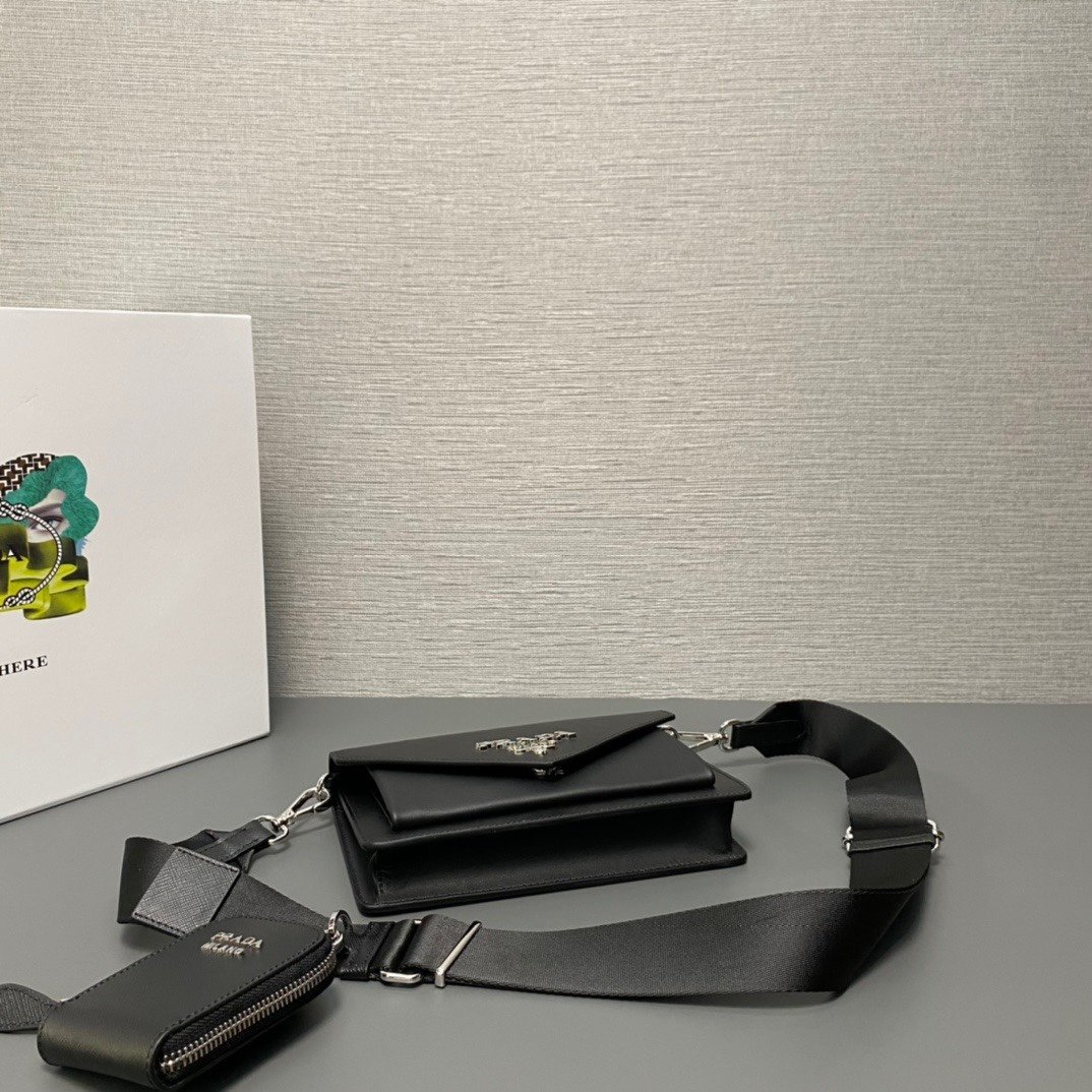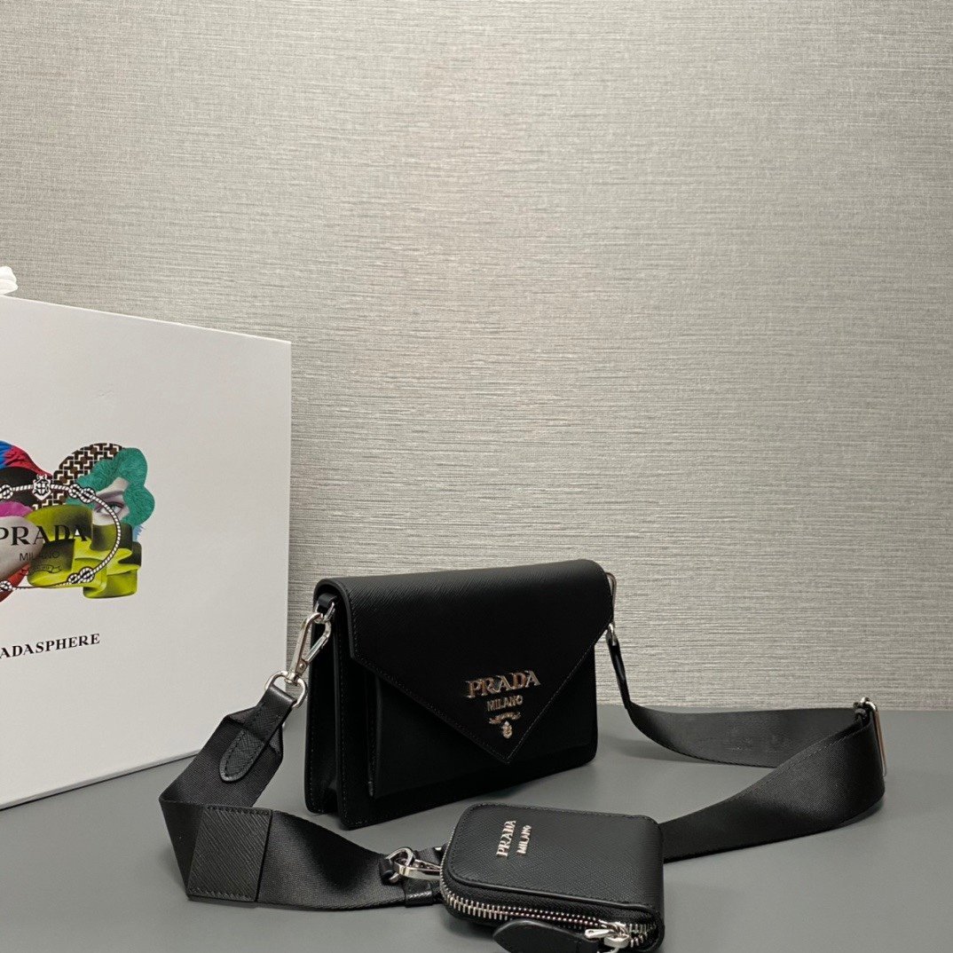 [Top original order] P’s three-in-one 1BP020 has arrived???? This mini envelope bag is equipped with a front flap, and the iconic lettering logo is embellished on the front, making the brand style clearly visible. The magnetic buckle closure design is classic, and the webbing shoulder strap allows it to be transformed into a crossbody bag or shoulder bag. It comes with a small coin purse, which is versatile and can be used as a handbag. ????????Soft lambskin lining with removable mirror Small pocket, size: length 20x height 12x bottom 4cm