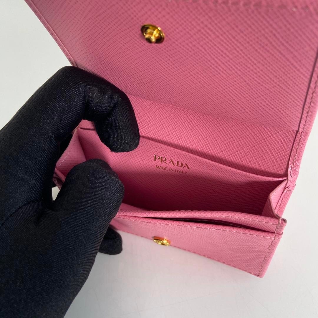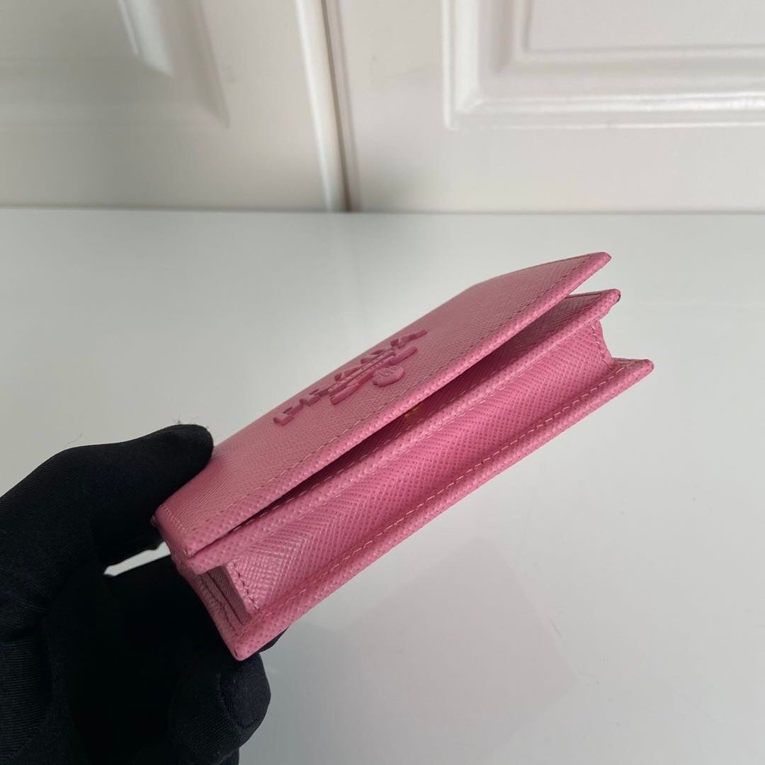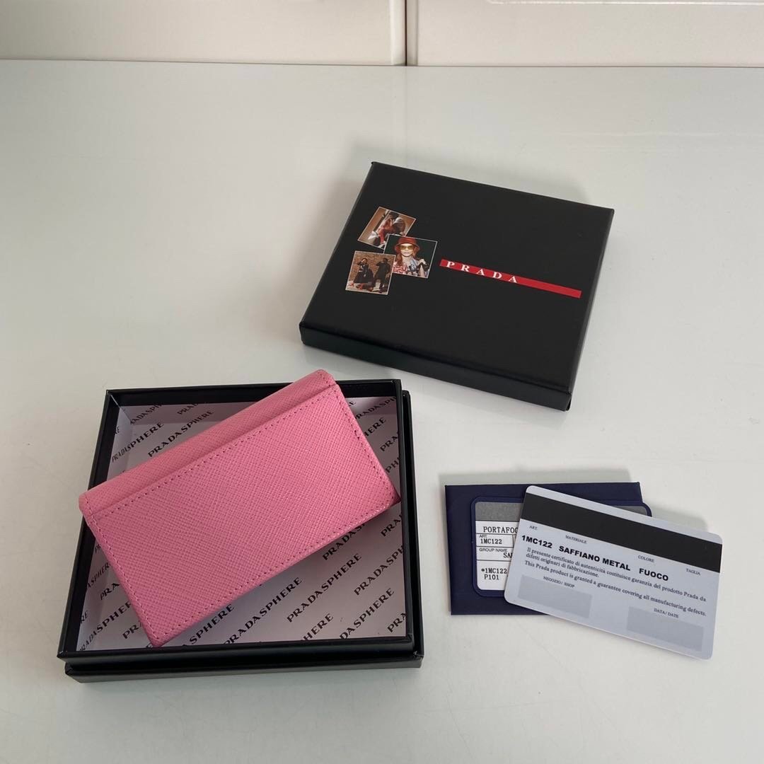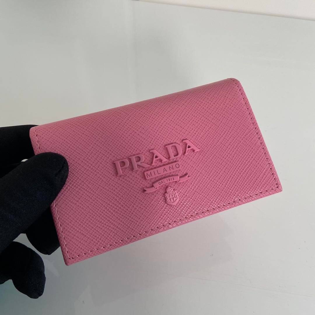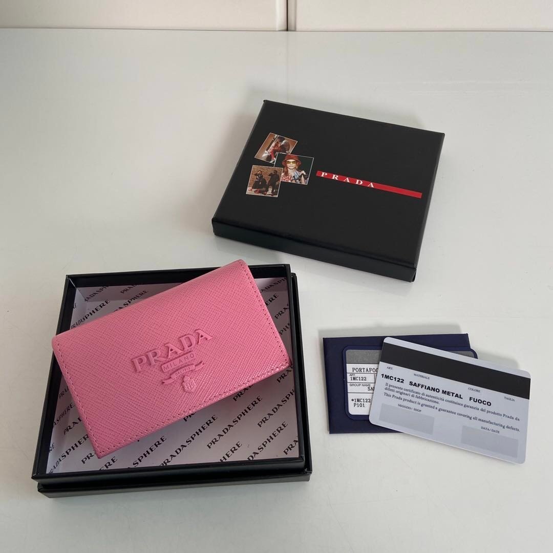 Prada. Classic card holder, model 1MC122, made of cross-grain cowhide, size 6.5×2.5×11cm, adopts snap button opening and closing design, and has two slots for cards or tickets. This exquisite card holder is small and convenient, with sufficient capacity and easy to place. It is easy to store in your bag, and can also be used as a separate item when going out every day. It is a hot seller????