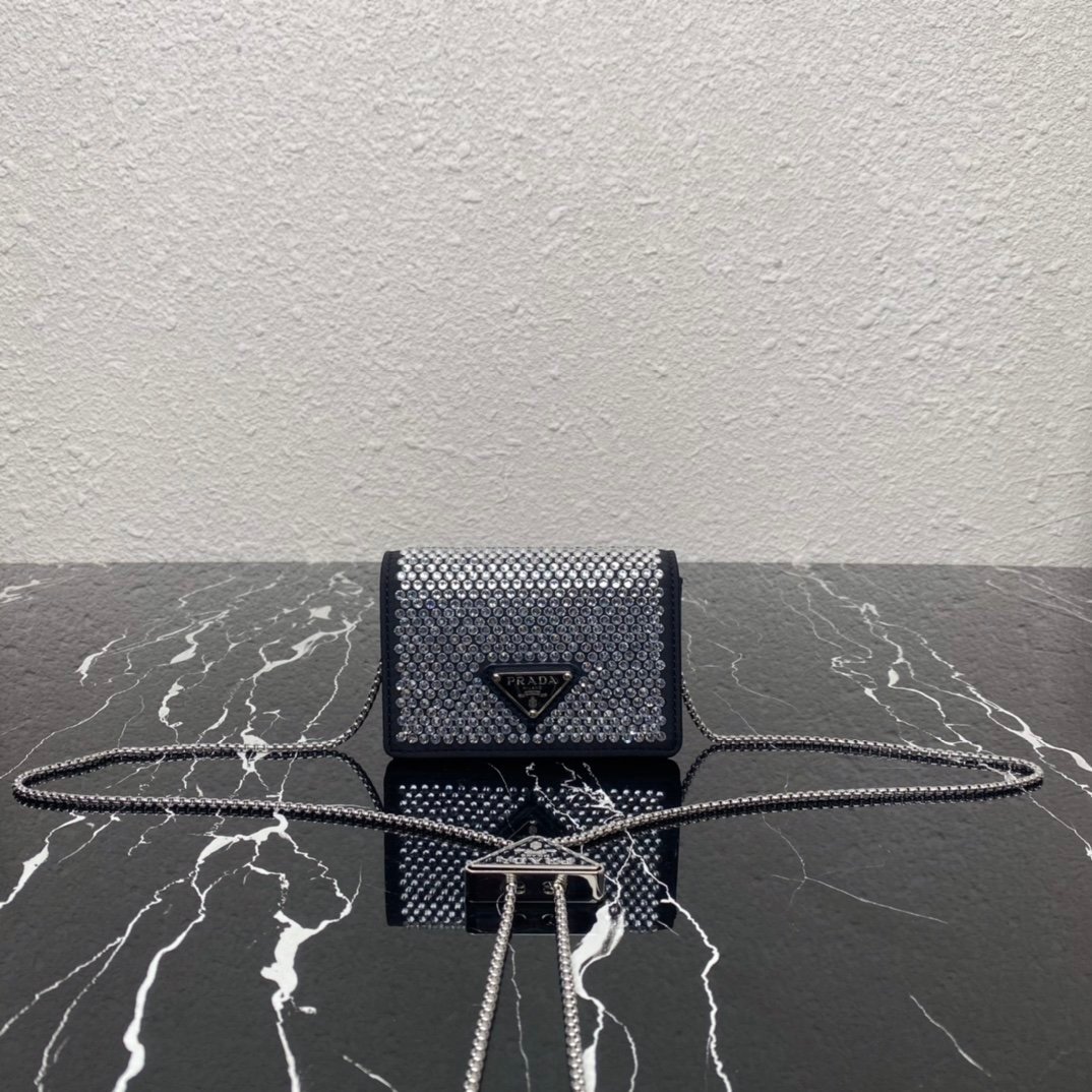 [Top Original Order] Necklace Crystal Pouch????1MR024 New Color????????This Duchesse fabric card holder is decorated with imitation crystals throughout, creating a light and shadow style and iridescent colors on the surface, highlighting a gorgeous yet functional design. My favorite is this detachable and adjustable iron shoulder strap, which can be used as a waist bag decoration???????? or as a necklace decoration with clothes. The triangle mark in the middle can be adjusted, giving the item a variety of ways to wear it. The space can be used to hold lipstick ????/earphones/keys????….it bling bling under the night light, so beautiful. Size: length 11.5cm*height 8cm
