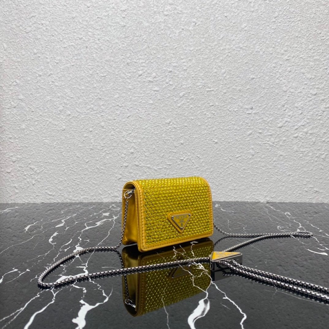 [Top Original Order] Necklace Crystal Pouch????1MR024 New Color????????This Duchesse fabric card holder is decorated with imitation crystals throughout, creating a light and shadow style and iridescent colors on the surface, highlighting a gorgeous yet functional design. My favorite is this detachable and adjustable iron shoulder strap, which can be used as a waist bag decoration???????? or as a necklace decoration with clothes. The triangle mark in the middle can be adjusted, giving the item a variety of ways to wear it. The space can be used to hold lipstick ????/earphones/keys????….it bling bling under the night light, so beautiful. Size: length 11.5cm*height 8cm
