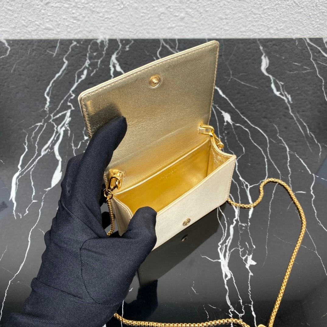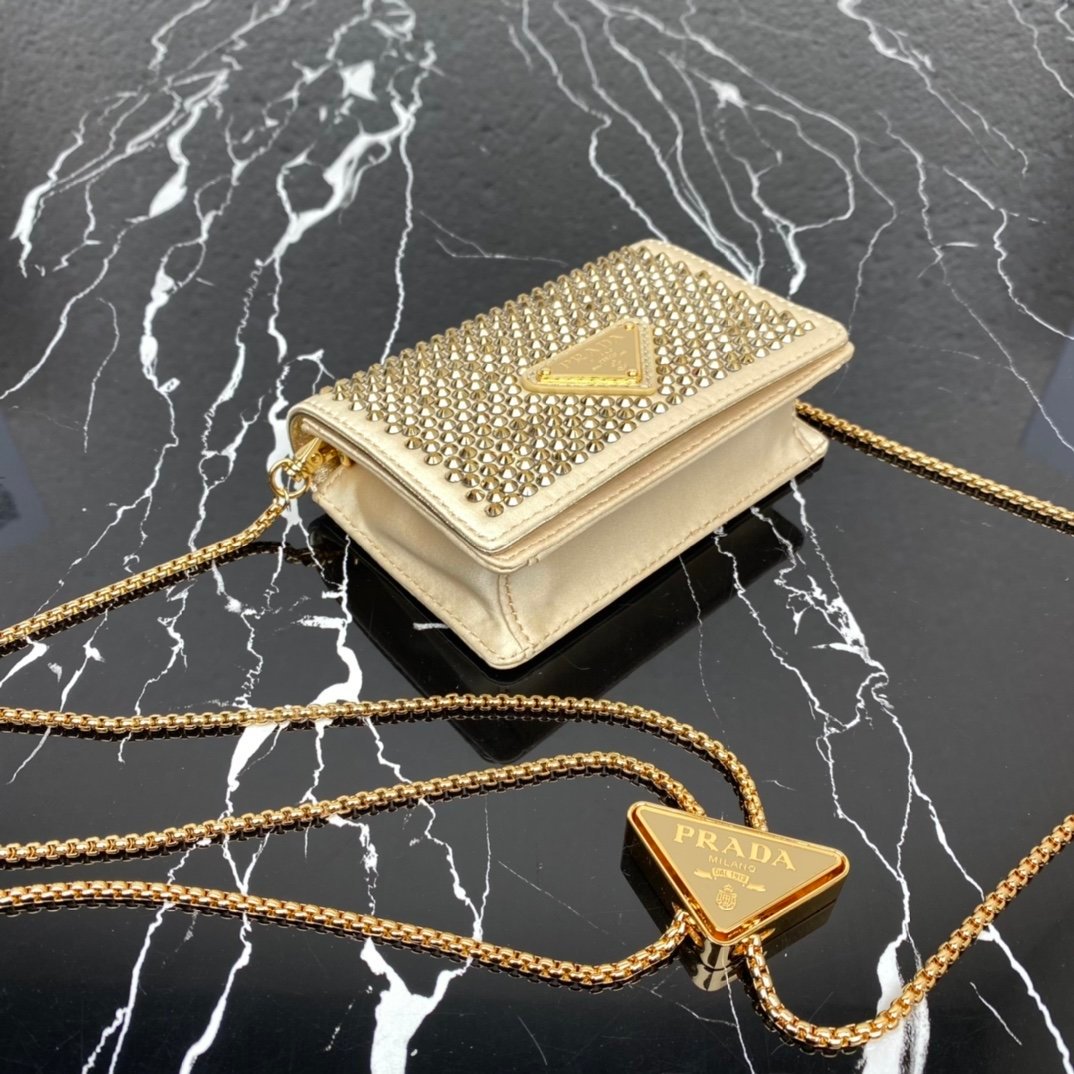 [Top Original Order] 2023 New Gold Necklace Crystal Pouch ????1MR024 This Duchesse fabric card holder is decorated with imitation crystals throughout, creating a light and shadow style and iridescent colors on the surface, highlighting a gorgeous yet functional design. My favorite is this detachable and adjustable iron shoulder strap, which can be used as a waist bag decoration???????? or as a necklace decoration with clothes. The triangle mark in the middle can be adjusted, giving the item a variety of ways to wear it. Space can be used to hold lipstick ????/earphones/keys, size: length 11.5cm*height 8cm