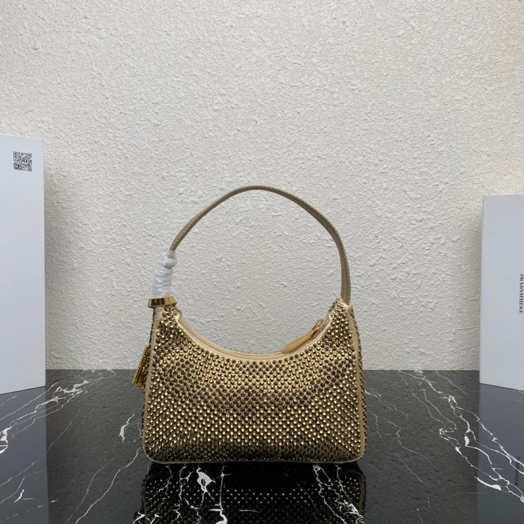 [Top original order] Flash diamond Hobo 1NE515 new golden flash diamond, the most beautiful and sparkling rhinestone Hobo ????????The imported diamond mesh has a shiny appearance and the blingbling effect under the night light is very eye-catching and has a very high rate of turning heads????????Everyone will pick it up wherever you take it. Kudos to you????This sparkly diamond bag is also very easy to match with your clothes. Hobo’s popular model. Dimensions: length 23x height 13x bottom 5cm