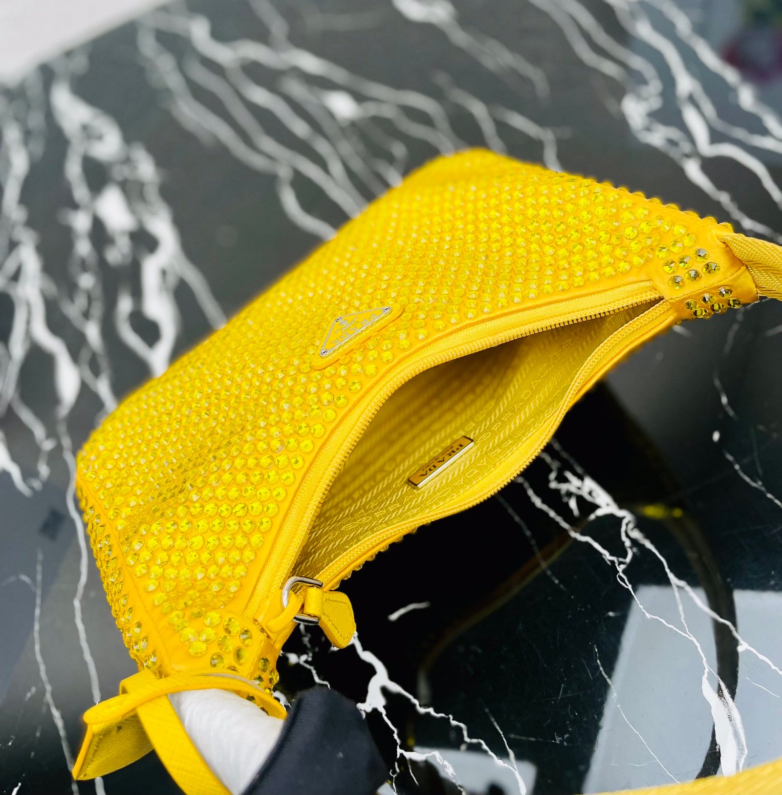 [Top original order] Flash diamond Hobo????2021 new 1NE515 flash diamond, the most beautiful and sparkling rhinestone Hoboؔ????????The imported diamond mesh has a bright and sparkling appearance. The blingbling effect under the night light is very eye-catching and the rate of turning heads is very high????????Everywhere you take it, it will be attracted People praise it all over the place????This sparkly diamond bag is also very easy to match with clothes. It is cute and cool, and it is suitable for any occasion. The popular elements of Hobo have always been recognized by Internet celebrities/celebrities, and it is another Hobo that is always popular????Dimensions: length 23x height 13x bottom 5cm