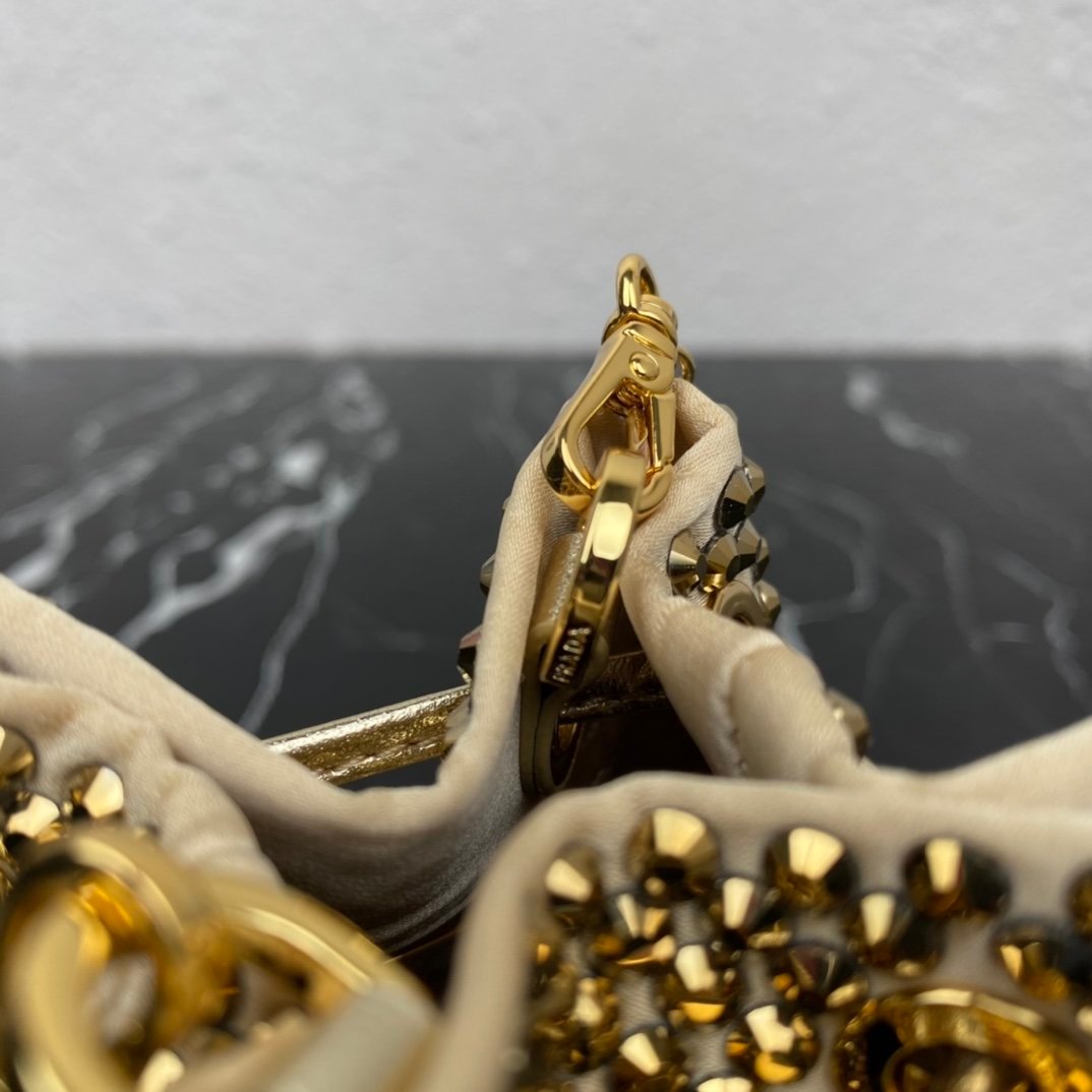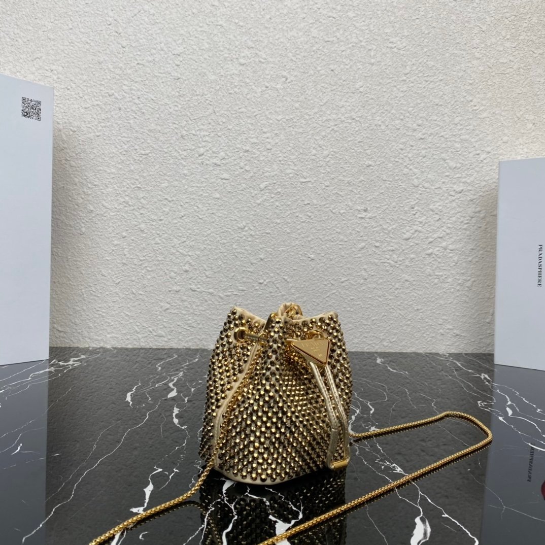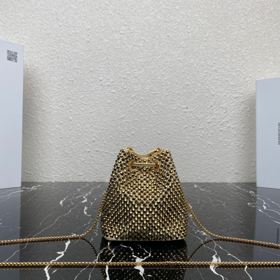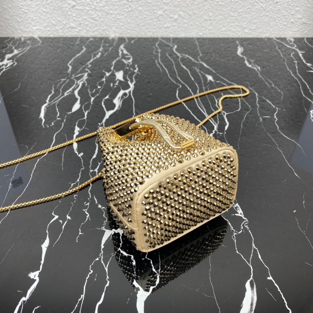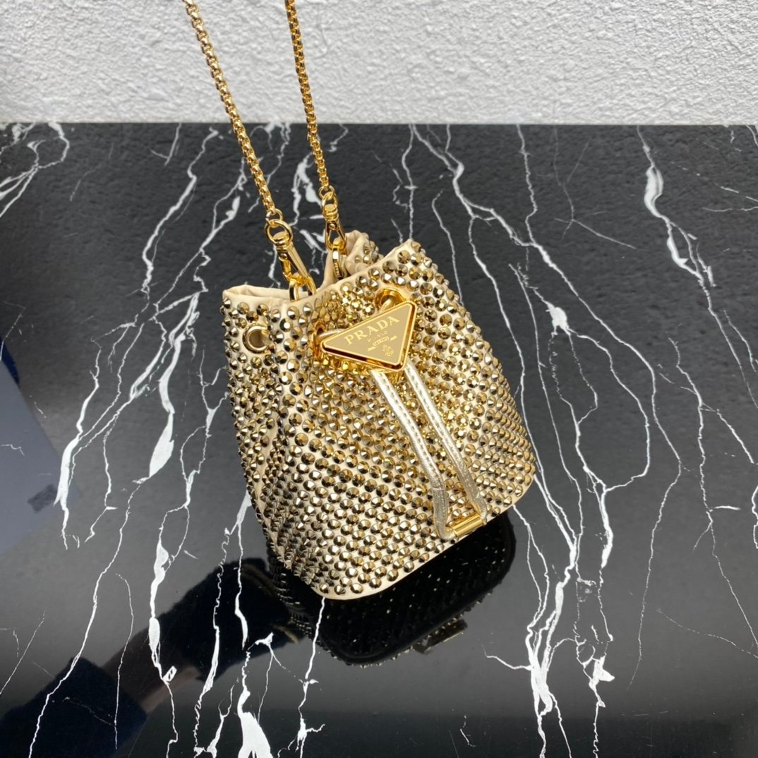 [Top original order] 2023 new necklace crystal small bag 1NR016????This imitation crystal decoration is covered with this triangular mini clutch bag, which is charming and shining. A removable chain shoulder strap and enameled metal triangle logo add style. The surface creates a light and shadow style and iridescent colors, highlighting a gorgeous yet functional design????????The space can be used to hold lipstick????/headphones/keys????…. bling bling under the night light, size: length 9cm* height 9.5cm* Width 6cm