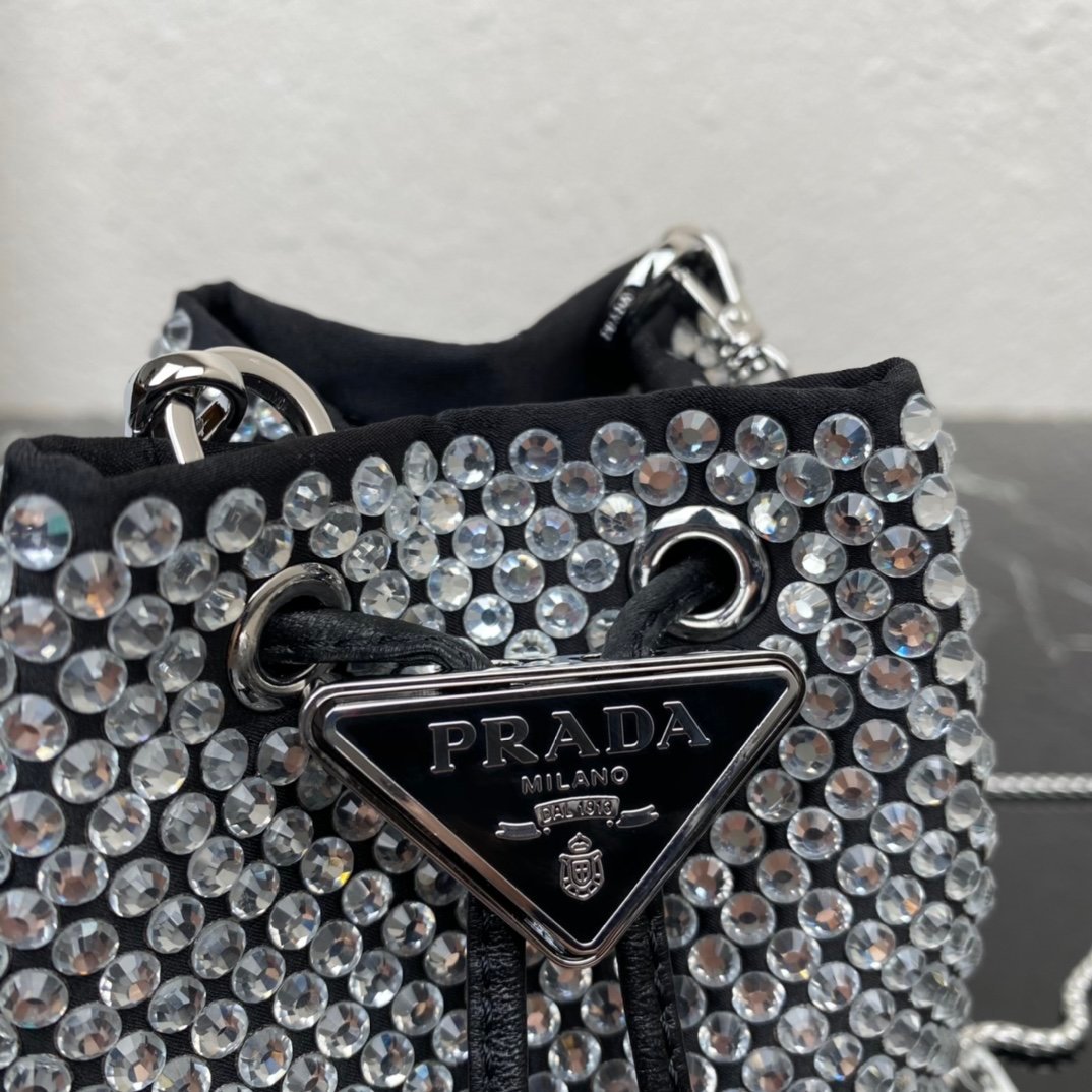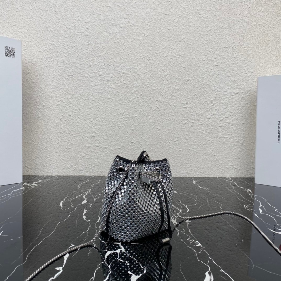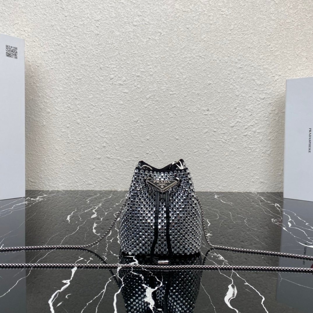 [Top original order] 2023 new necklace crystal small bag 1NR016????This imitation crystal decoration is covered with this triangular mini clutch bag, which is charming and shining. A removable chain shoulder strap and enameled metal triangle logo add style. The surface creates a light and shadow style and iridescent colors, highlighting a gorgeous yet functional design????????The space can be used to hold lipstick????/headphones/keys????…. bling bling under the night light, size: length 9cm* height 9.5cm* Width 6cm