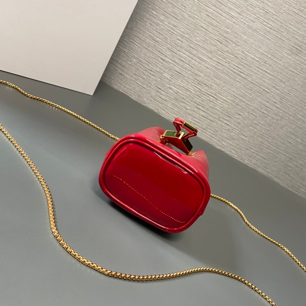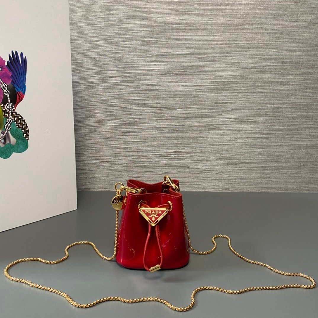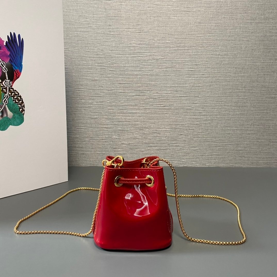 [Top original order] Patent leather bucket????1NR016 calfskin????????This patent leather bucket is made of imported glossy cowhide and enamel-coated metal triangle logo decorated opening and closing design. Metal iron can be spanned diagonally. So beautiful and cute????????Dimensions: length 9.5x height 9x bottom 6cm