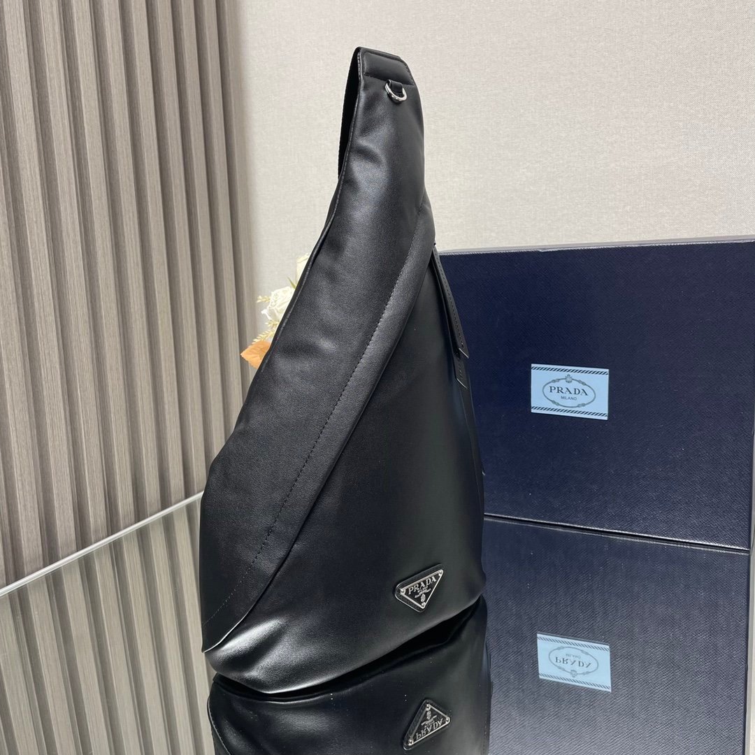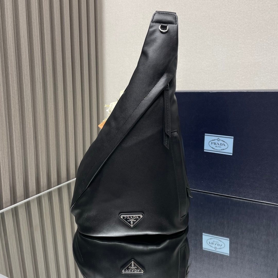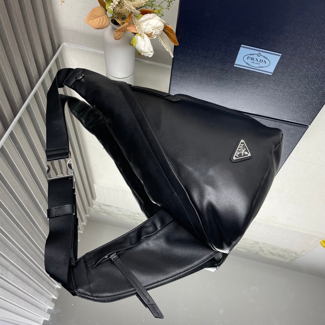 [Top original order] New chest bag????2VZ092 full leather????2021 autumn and winter men’s chest bag is made of soft calf leather. The style of the bag is between a backpack and a shoulder bag, demonstrating a mixed design style. The adjustable woven nylon shoulder strap with side release buckle highlights functionality, and the signature enameled metal triangle logo highlights the brand’s style. Simple and elegant, the upper body effect is very cool???? Dimensions: length 26.5x height 37.5x bottom 10cm